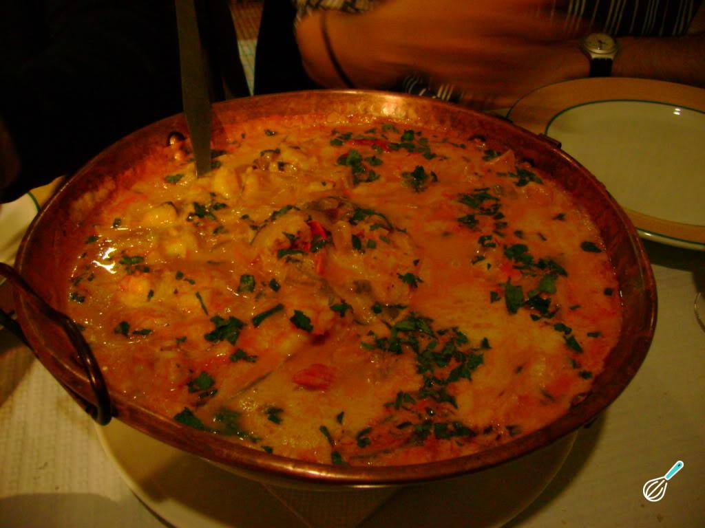 Tempere com sal e pimenta-do-reino e junte o extrato de tomate, o polvo, os vôngoles e a batata doce. Cozinhe por mais 15 minutos e, no final, acrescente os coentros. Se necessário, corrija o tempero.