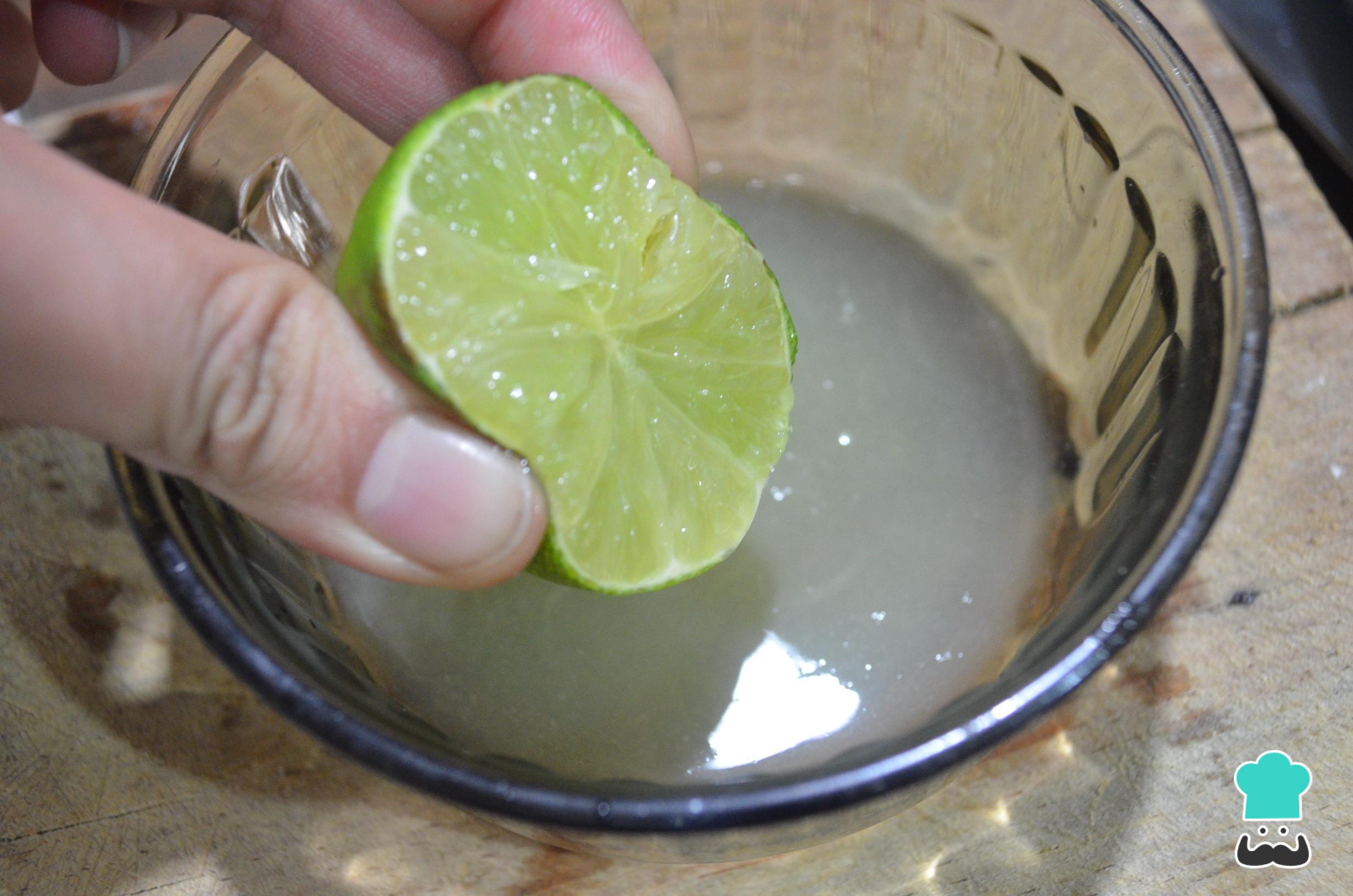 Para temperar esprema os limões para um recipiente. Deverá obter cerca de 4 colheres de sopa de suco de limão.