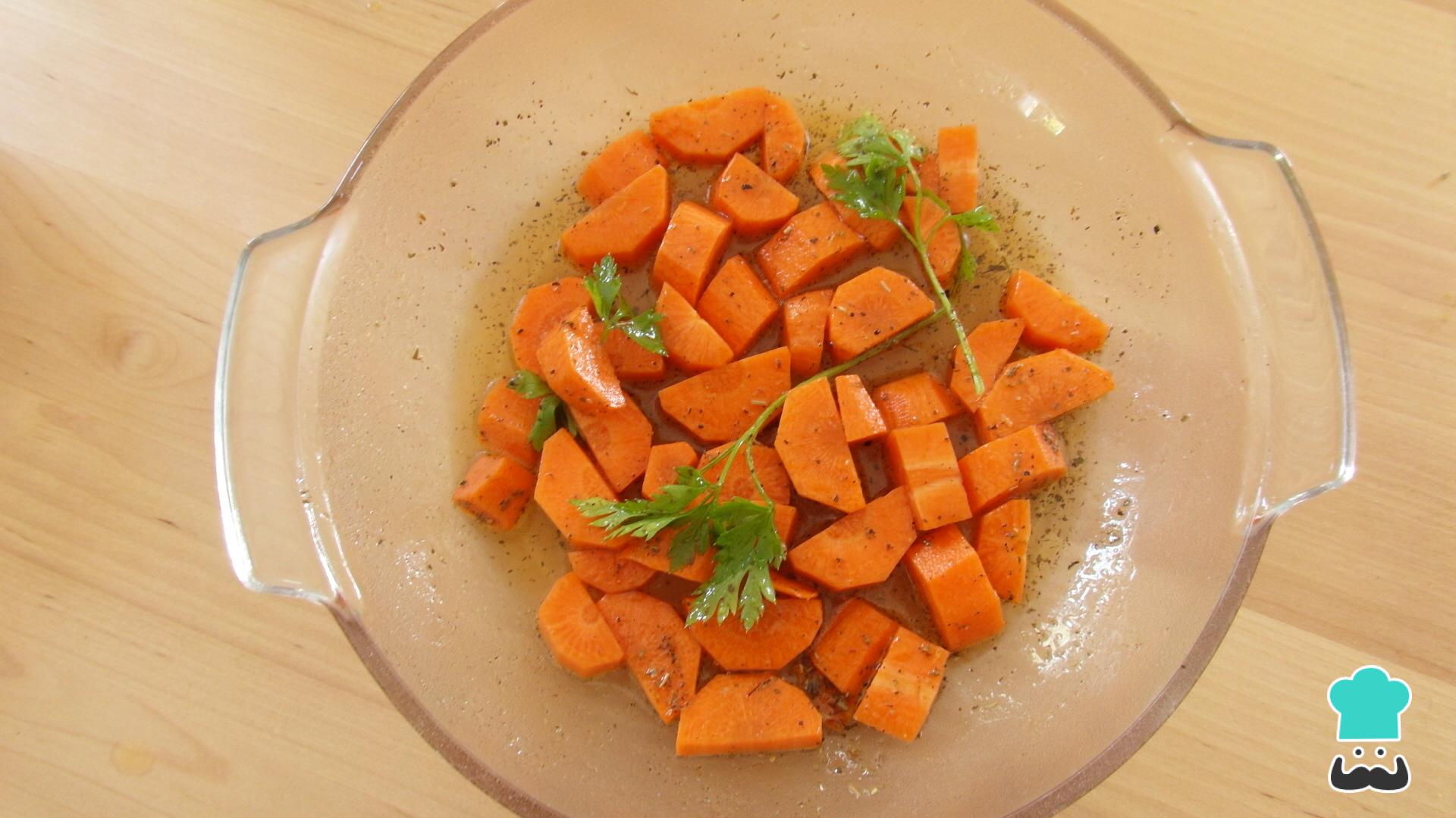 Para preparar esta receita saudável de cenoura no fornocomece por reunir os ingredientes.