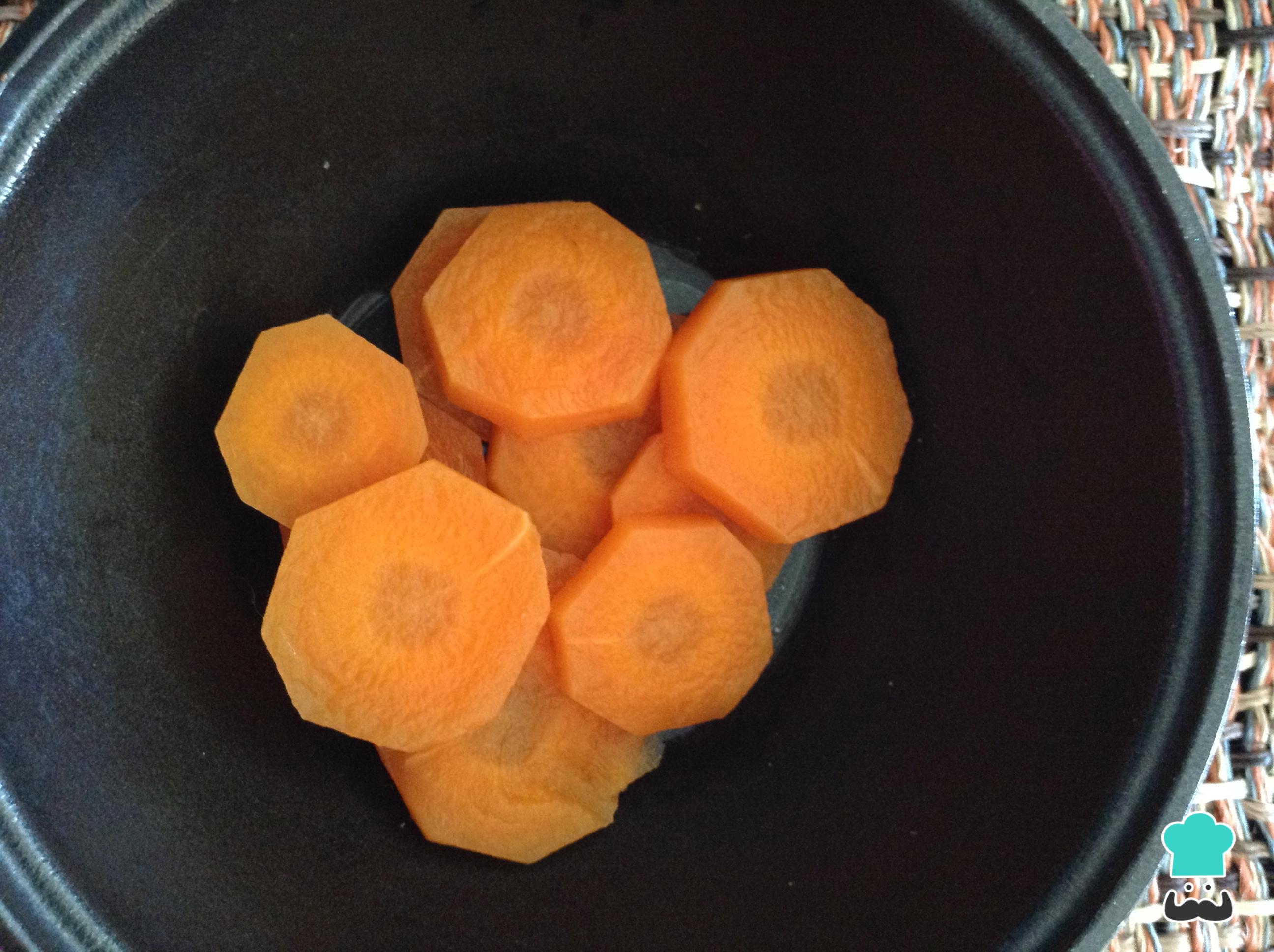 Prepare os ingredientes desta receita de cenouras com creme de leite.