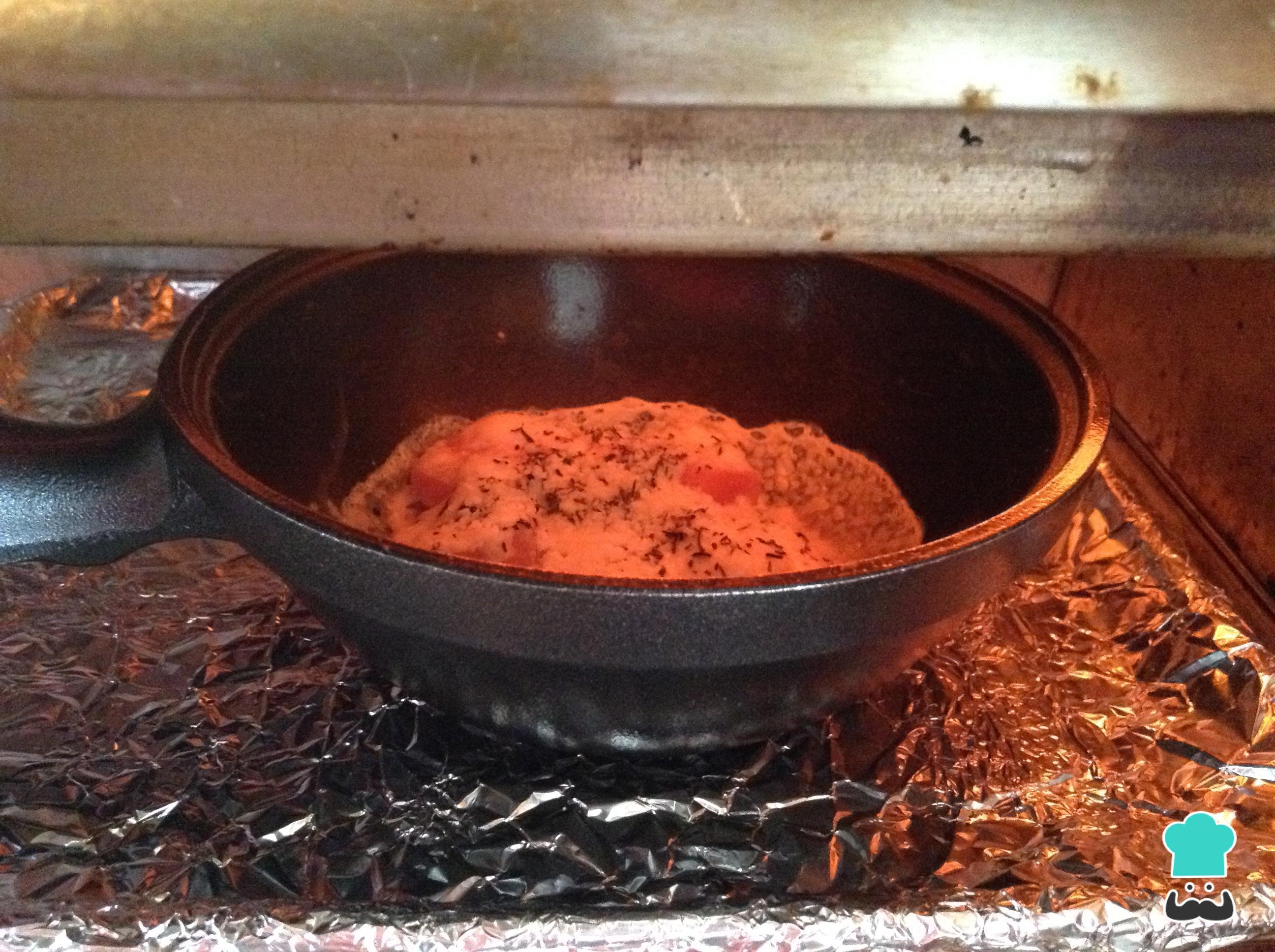 Leve a assar no forno preaquecido a 160ºC até que o queijo gratine, o que demorará cerca de 10 minutos.