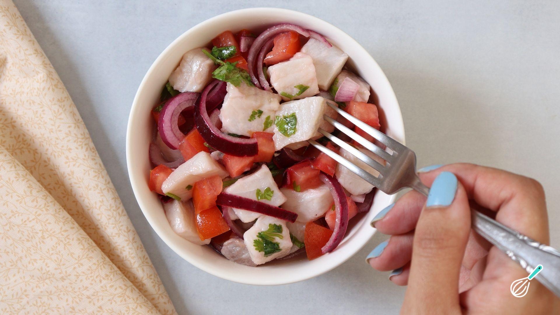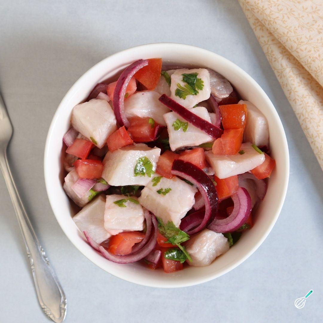 Seu ceviche peruano de tilápia está pronto! Agora é só se deliciar com essa receita peruana super refrescante e perfeita para os dias quentes. Bom apetite!