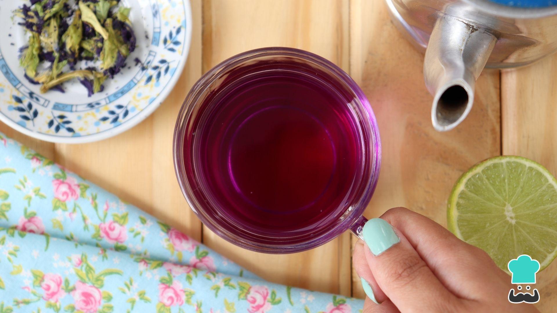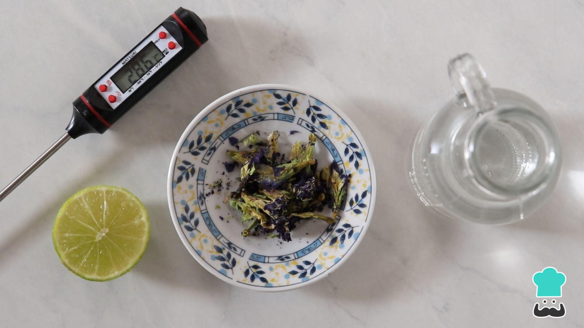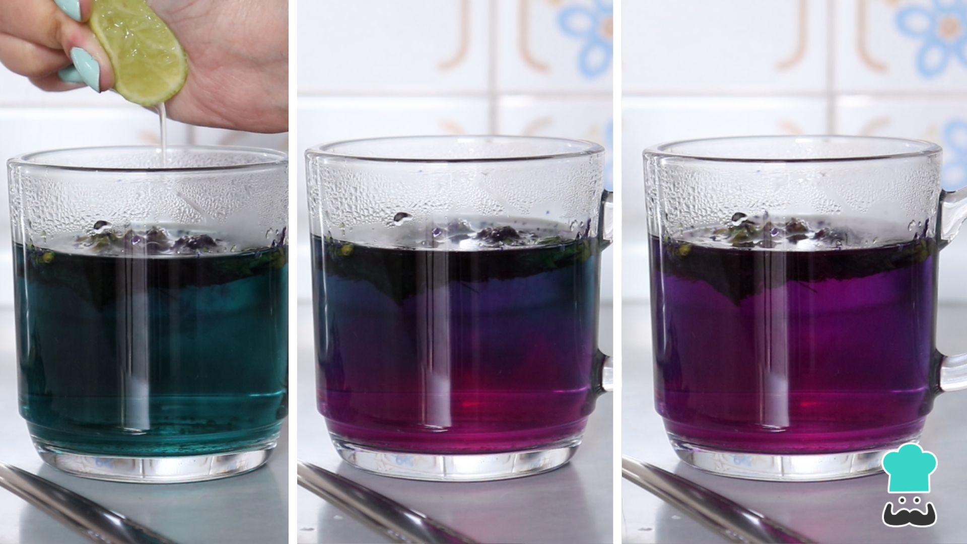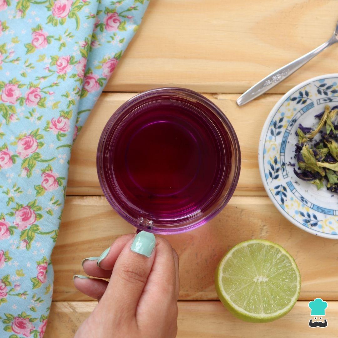 E pra fazer a mágica acontecer, pingue algumas gotas de limão: seu chá azul se tornará roxo!