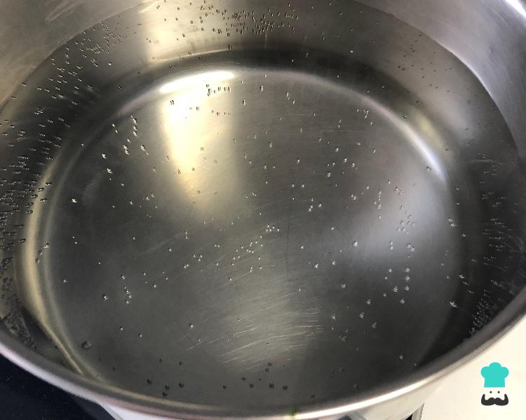Coloque a água numa panela e leve ao fogo, para ferver.