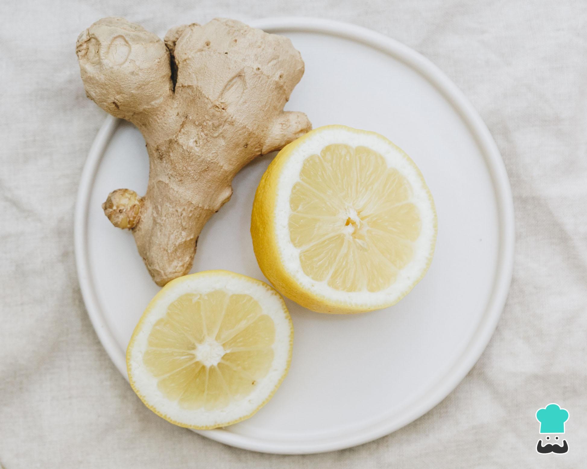 Lave muito bem meio limão e, com a ajuda de um descascador ou faca afiada, retire a casca evitando o mínimo da parte branca (para não amargar o chá). Reserve essa casca de limão porque o chá será preparado com ela, não com a polpa do limão. Corte 1 rodela de gengibre com espessura de aproximadamente 1 dedo e descasque ou raspe a pele do gengibre com a faca.