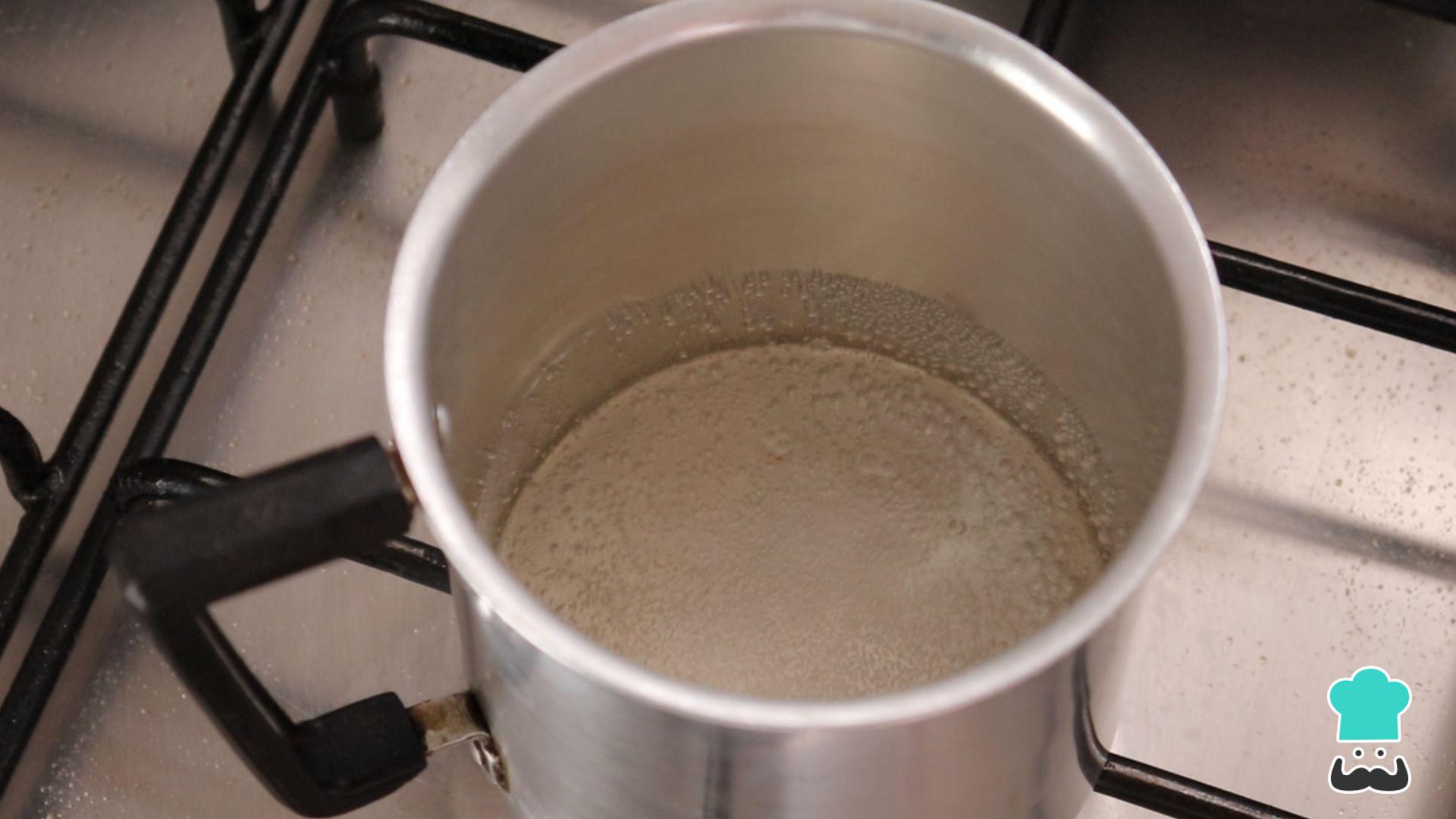 Leve a água ao fogo e assim que formar as bolhinhas desligue.