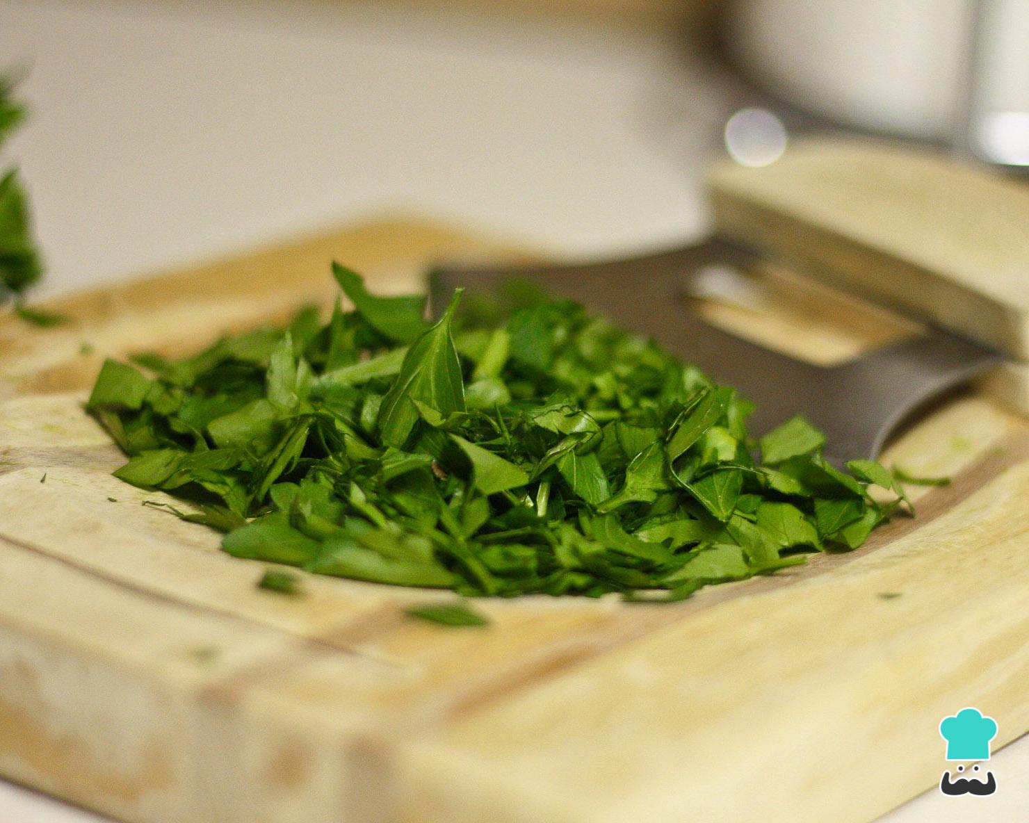 Leve ao fogo alto uma panela com a água e a salsinha e deixe até ferver.