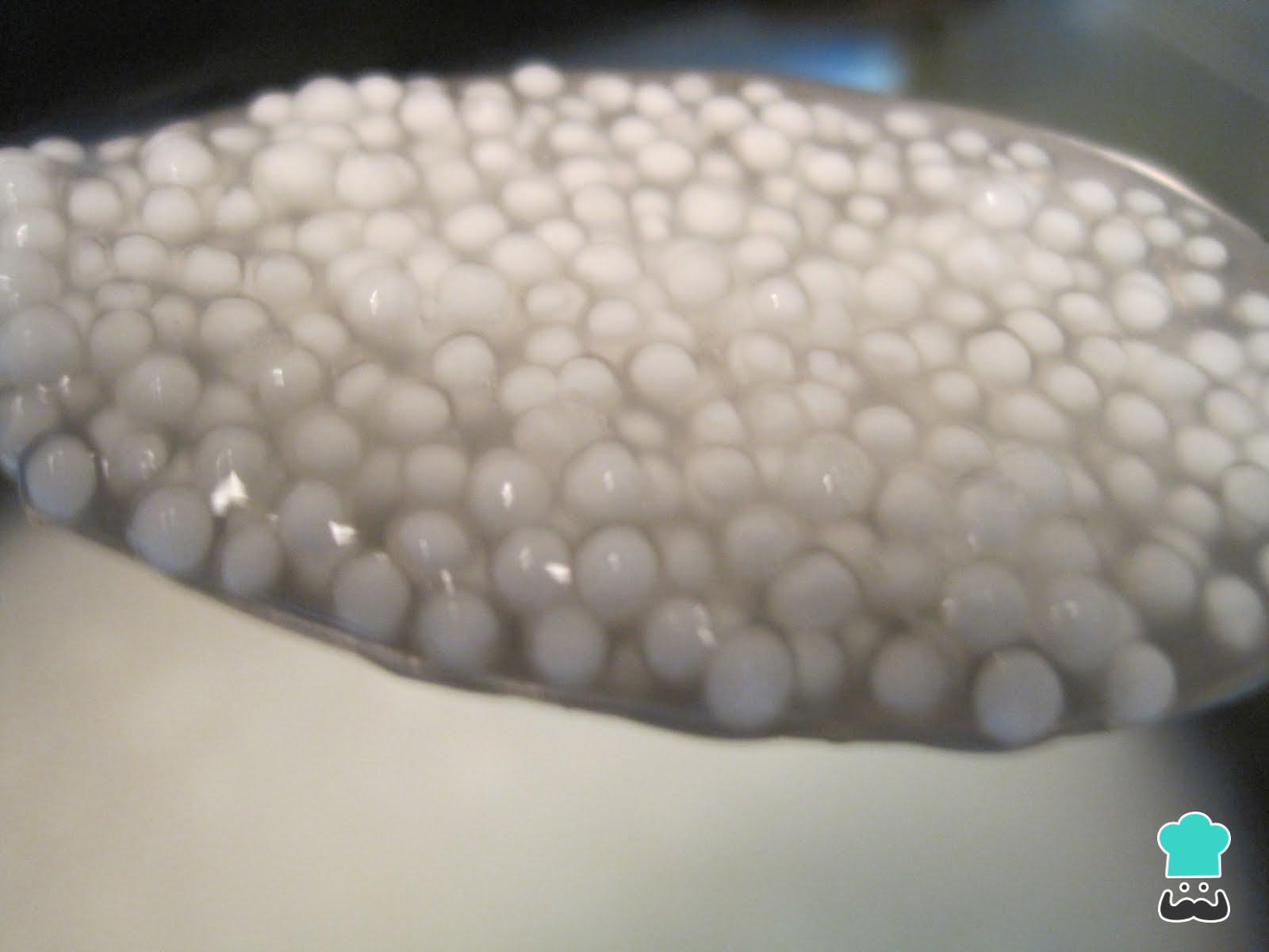 Para preparar esta receita de chá com bolinhas, comece por hidratar o sagu na água por 2 horas.