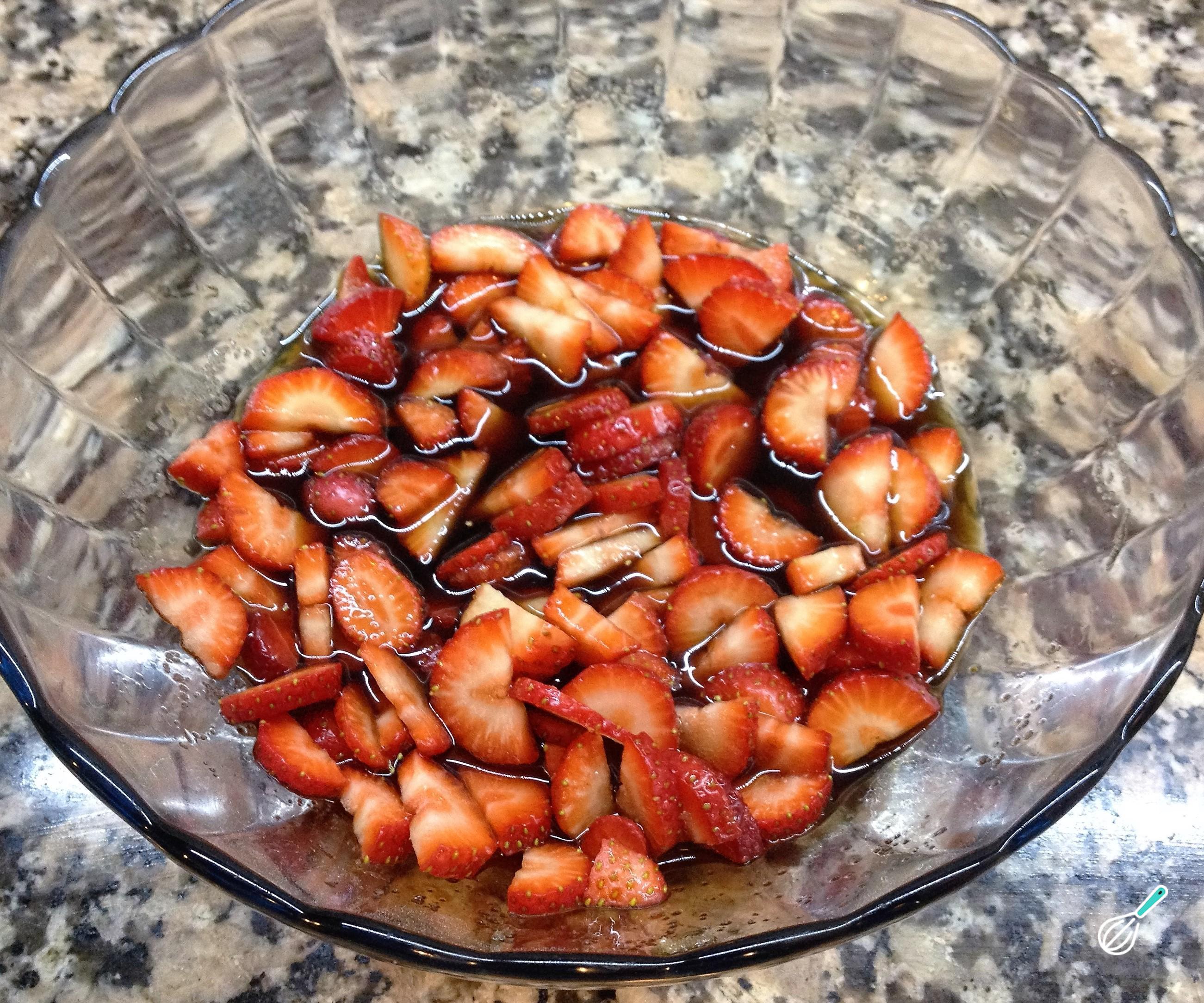 Dica: Tenha em mente que a base da forma será o topo do bolo com calda de morango.