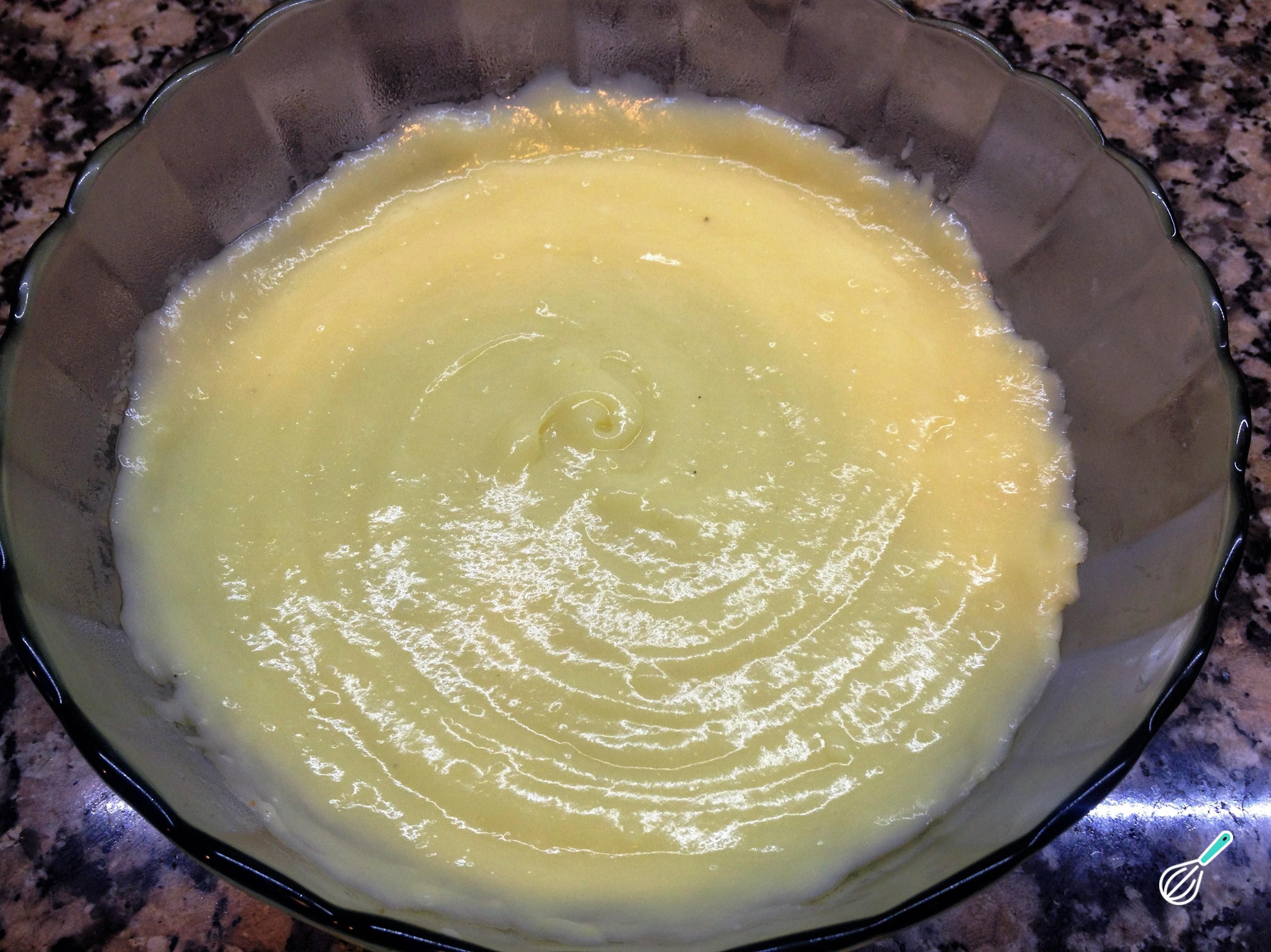 Para continuar com a preparação da Charlotte com vinho do Porto, agora é a vez do creme, que nada mais é do que a combinação de creme e chantilly: Coloque o leite, ovos, açúcar, raspas de limão e o amido de milho em uma panela de uma vez). Leve essa mistura ao fogo e mexa bem até engrossar. Retire o creme do fogo e adicione a essência de baunilha. Em seguida, cubra com filme e leve à geladeira até esfriar.