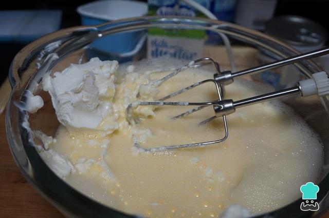 Em seguida acrescente o creme de leite e o leite condensado e volte a bater.