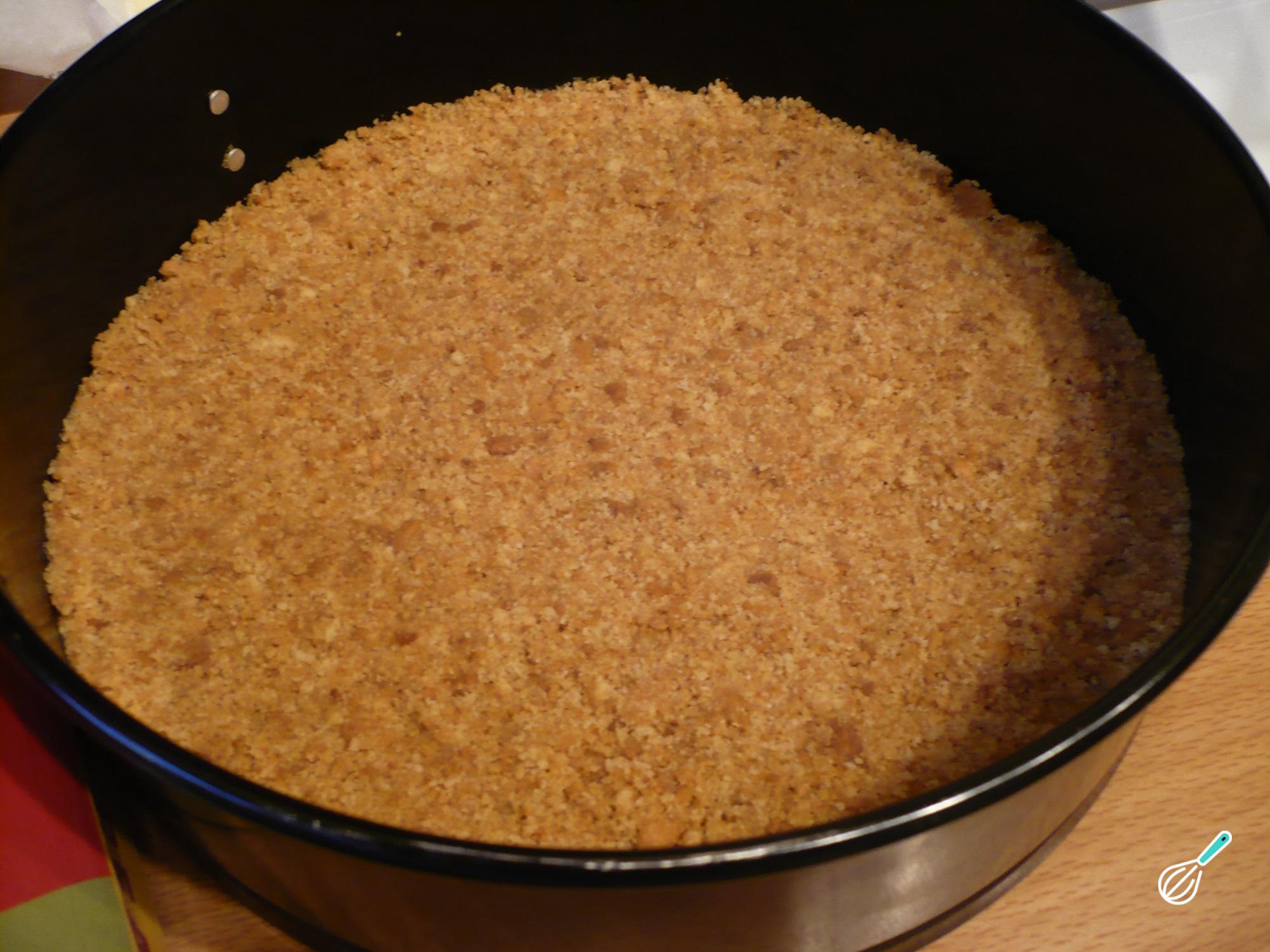 Para fazer este delicioso cheesecake de quark, comece por triturar os biscoitos e a manteiga em um processador, até obter uma farofa. Se preferir, pode esmagar os biscoitos com um socador, e misturar manualmente com a manteiga.