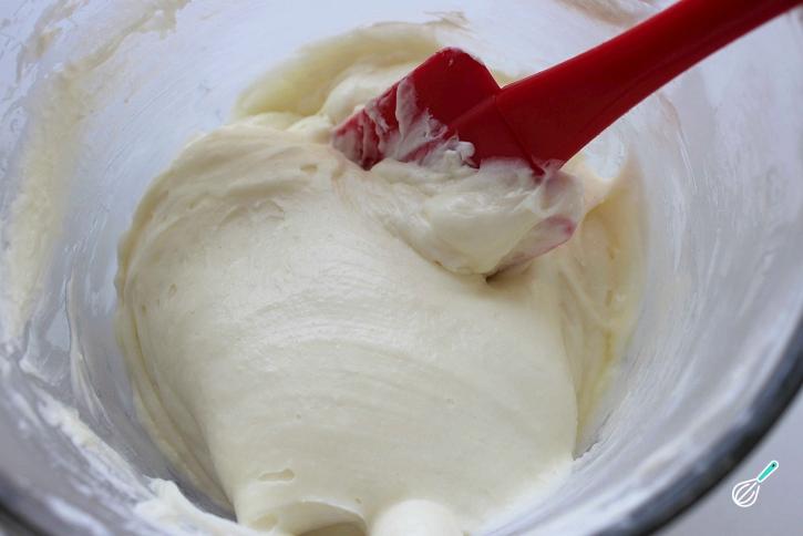 Com a ajuda da batedeira, bata a manteiga, o açúcar e a farinha ou maisena, até virar um creme. Acrescente os restantes ingredientes (incluindo o leite coagulado) e misture tudo muito bem, de forma a conseguir um creme espesso e sem grumos.
