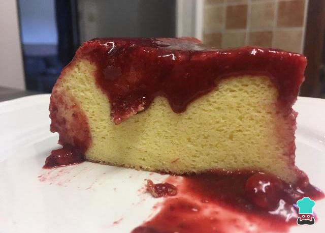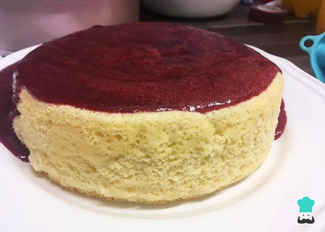 Cubra o cheesecake japonês com geleia, doce ou calda de frutas vermelhas e está pronto a servir. Delicie-se com esta deliciosa torta de cream cheese gelada e diga nos comentários o que você achou. Bom apetite!