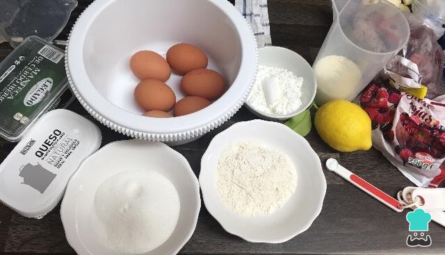 Comece por reunir todos os ingredientes devidamente separados e medidos, desse jeito será mais fácil preparar esta receita de cheesecake fácil e rápido. Lembre que os ingredientes devem estar em temperatura ambiente (cream cheese, leite, ovos e manteiga), desse jeito o cheesecake assa corretamente e não murcha - descubra porque o bolo murcha depois de assado.