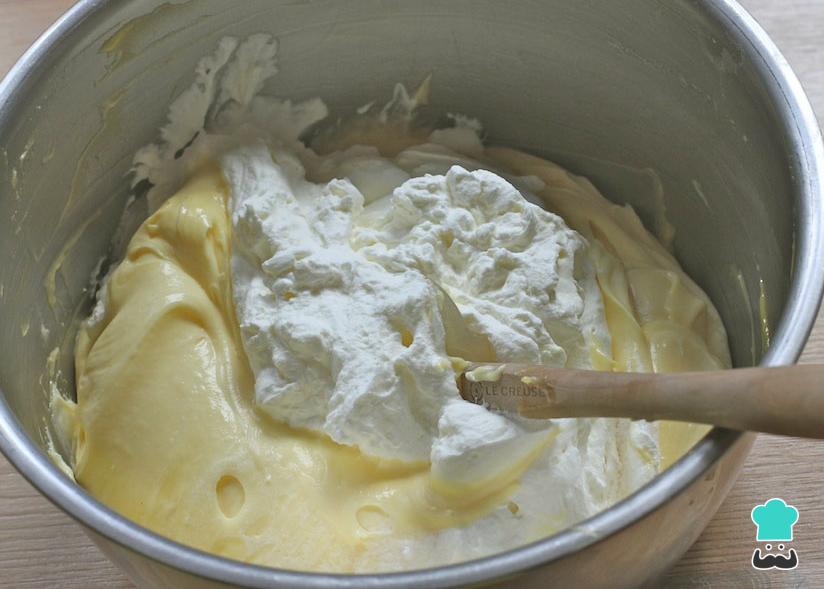 Quando o merengue do passo anterior estiver bem consistente, incorpore-o na mistura de gemas, cream cheese, leite, limão e manteiga aos poucos e bem delicadamente.