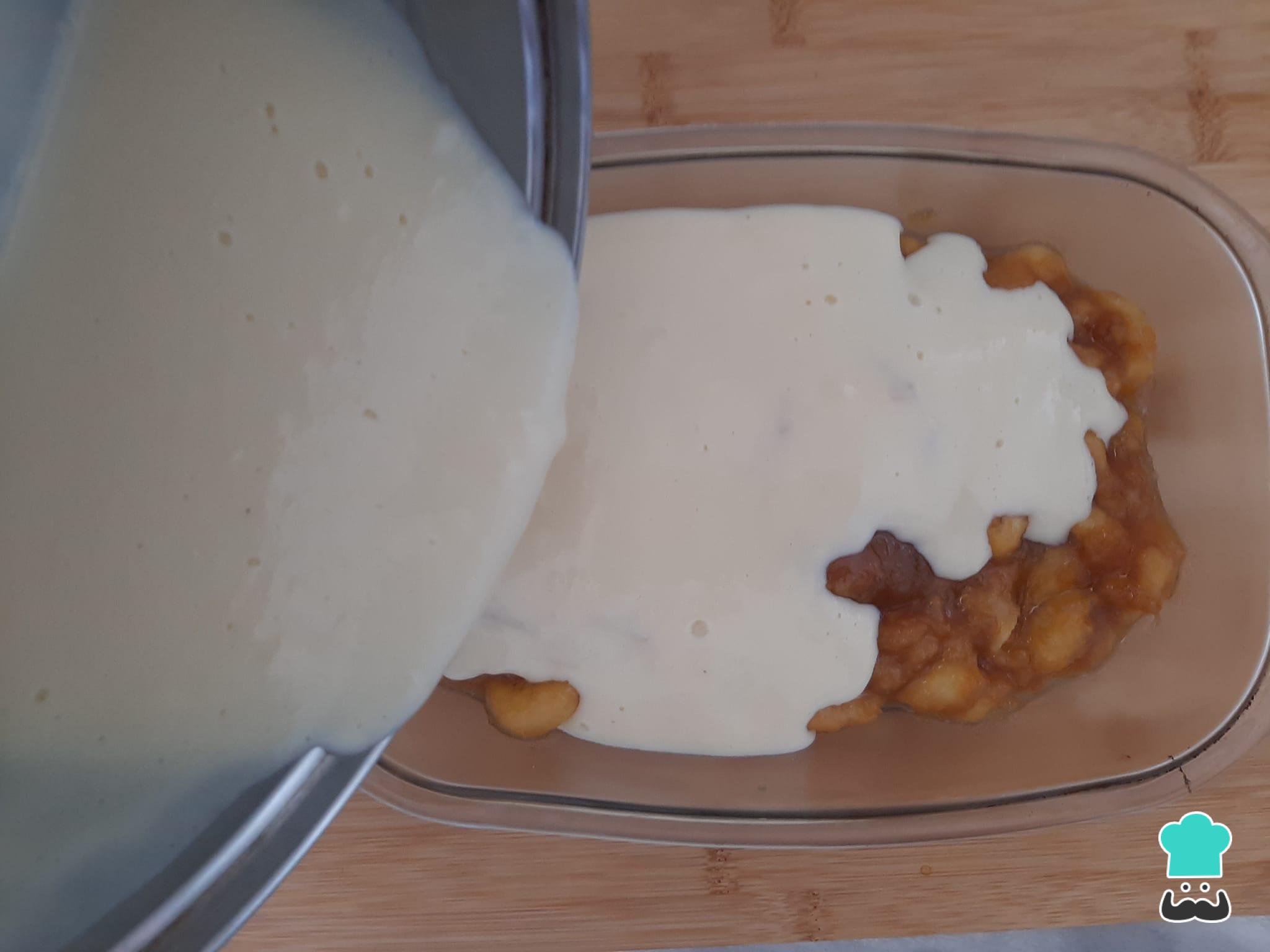 Monte a sobremesa num refratário médio, começando pela camada de bananas caramelizadas e, em seguida, cobrindo com o creme já morno.