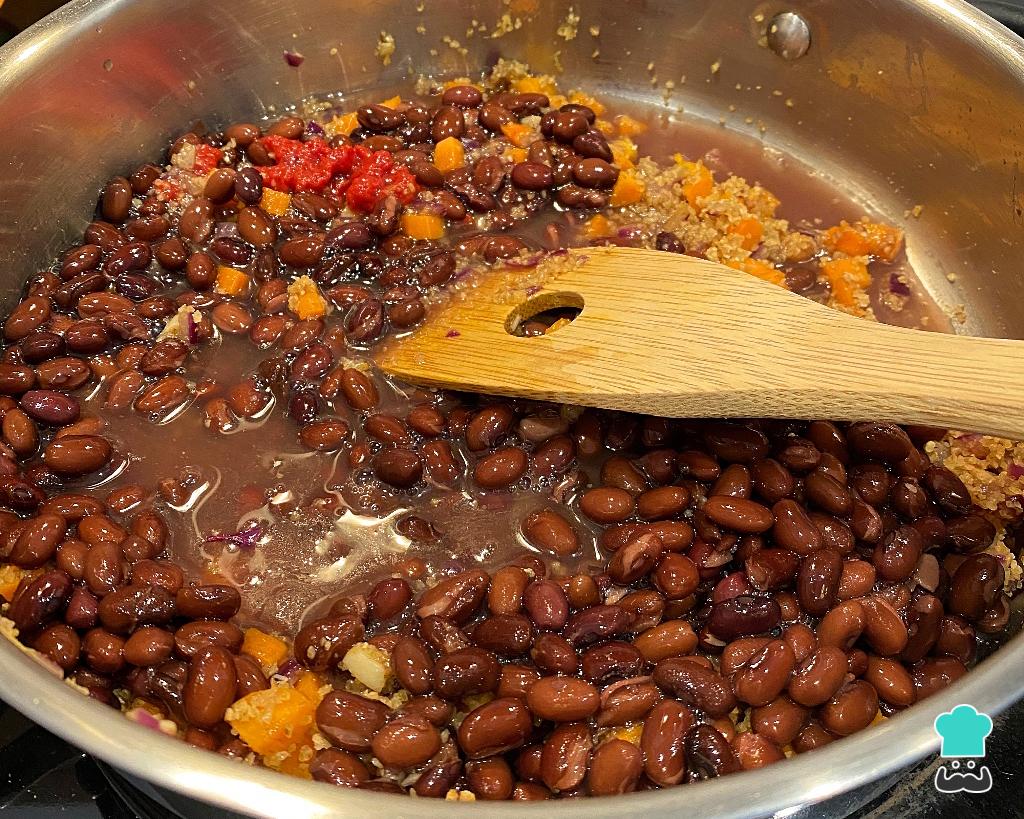 Dica: A lata de feijão preto pode ser substituída por 1,5 xícara de feijão preto cozido em casa mais 1 xícara da água do feijão.