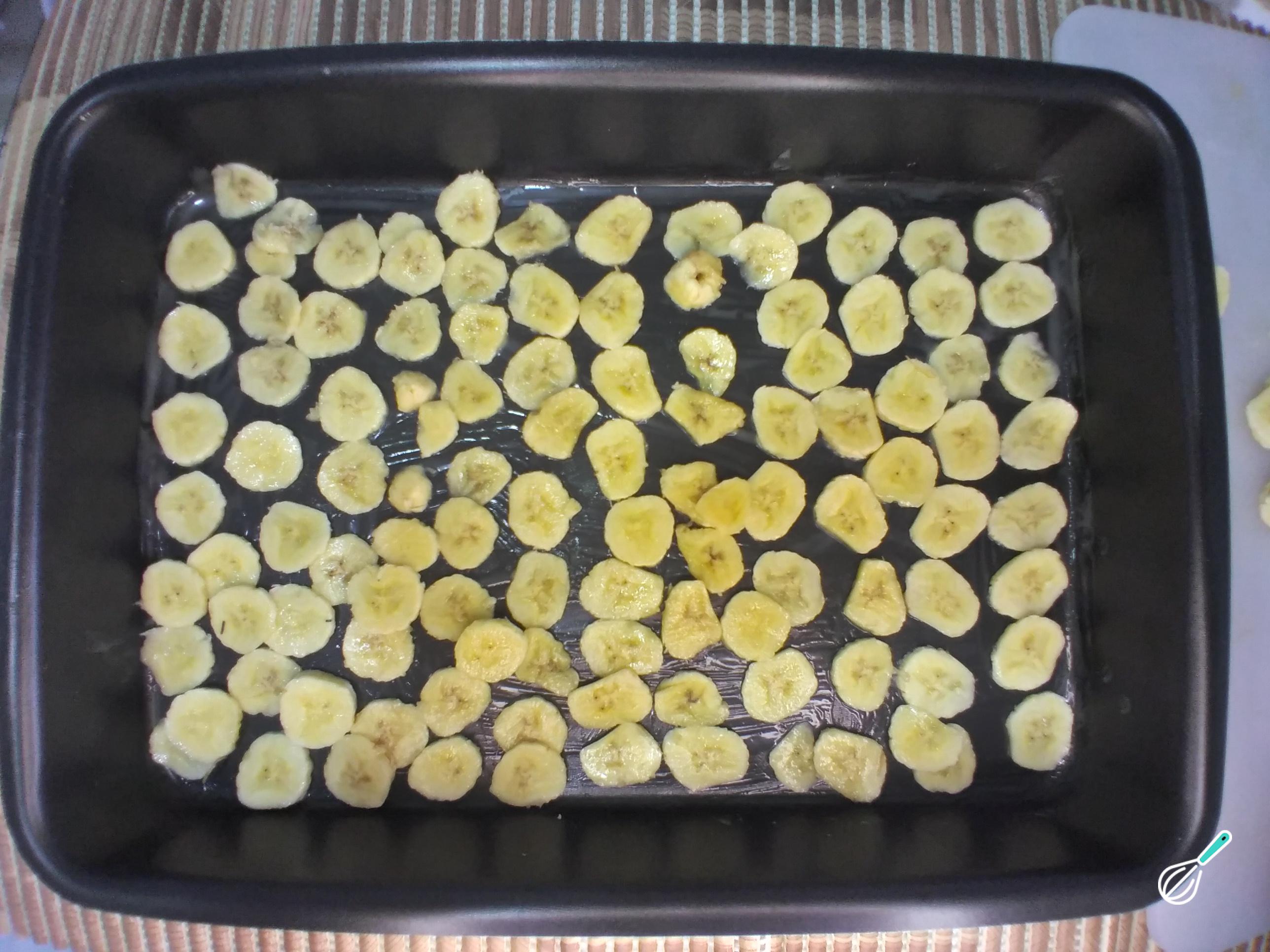 Feito isso, em uma assadeira grande, pincele a manteiga de coco. Em seguida posicione as rodelas de banana uma ao lado da outra até completar a assadeira. Coloque sal e os temperos por cima das rodelas de banana. Pincele novamente manteiga de coco. Pré-aqueça o forno a 200 graus e leve para assar. Depois de 10 minutos, confira como estão. Se estiverem douradas, vire para que asse de todos os lados. O tempo de forno varia de acordo com sua preferência. Se gostar dos chips mais clarinhos deixe menos tempo. Se preferir mais dourados, deixe mais tempo.