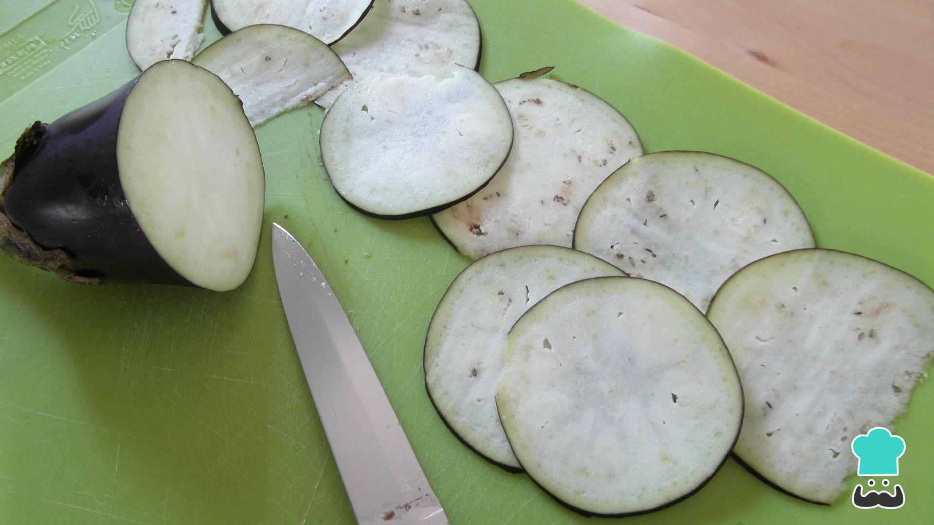 Para fazer os chips de berinjela comece por cortar a berinjela em rodelas bem fininhas, quase transparentes. Isto é importante porque, quanto mais finas estiverem as rodelas, mais crocantes ficarão.