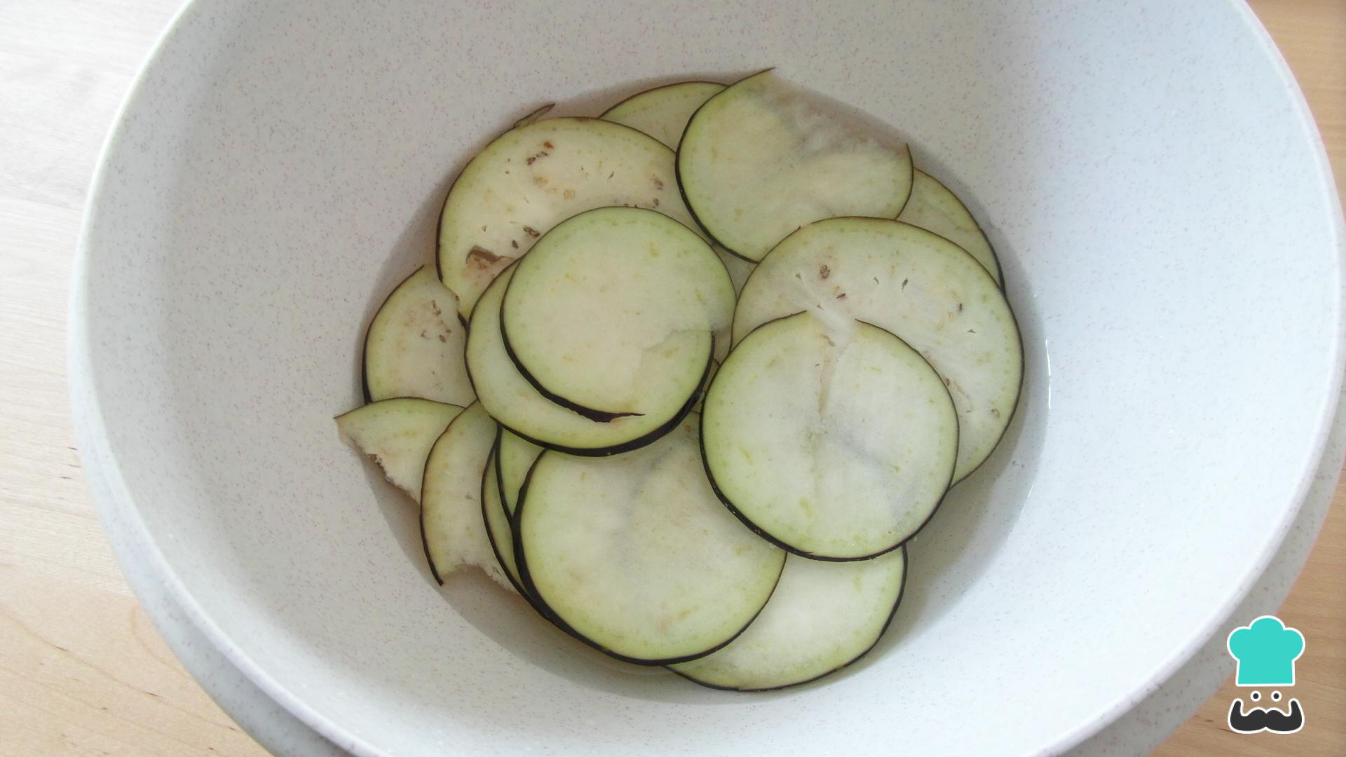 Coloque as rodelas em uma tigela com água e sal e tampe. Deixe repousar por 30 minutos.