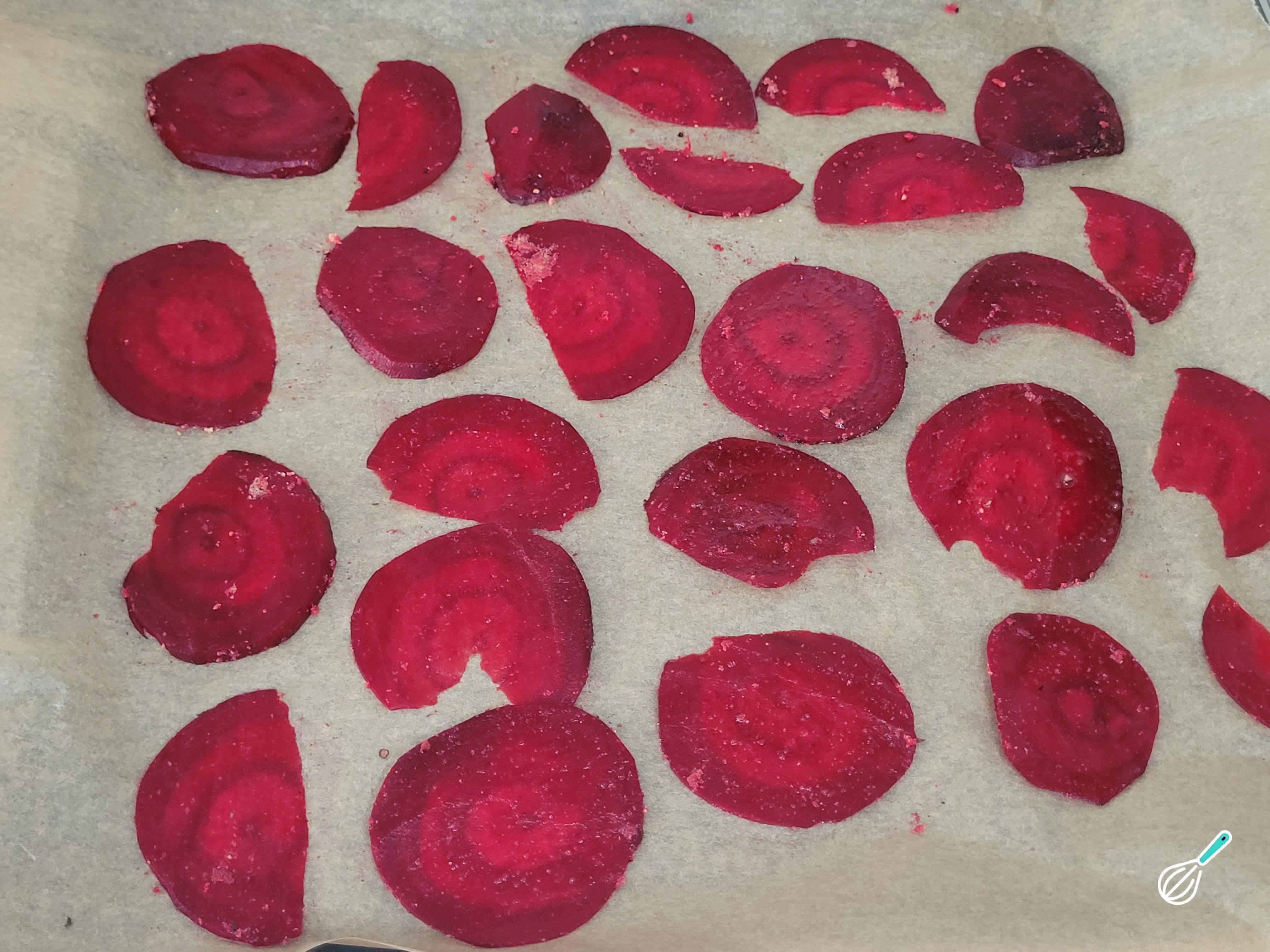 Esses chips de beterraba são uma ótima opção de lanchinho quando a gente quer uma coisinha crocante, mas também são ótimos para dar um toque crocante em saladas e outros pratos. E o melhor é que são super fáceis de fazer e ainda são saudáveis porque são feitos no forno.