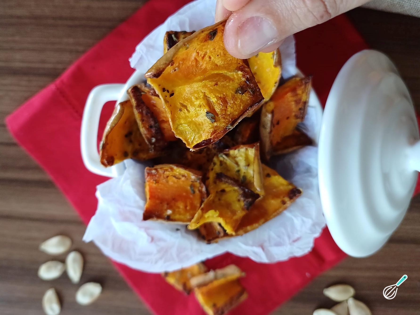 Espero que tenha gostado desta sugestão de receita de Chips de casca de abóbora!