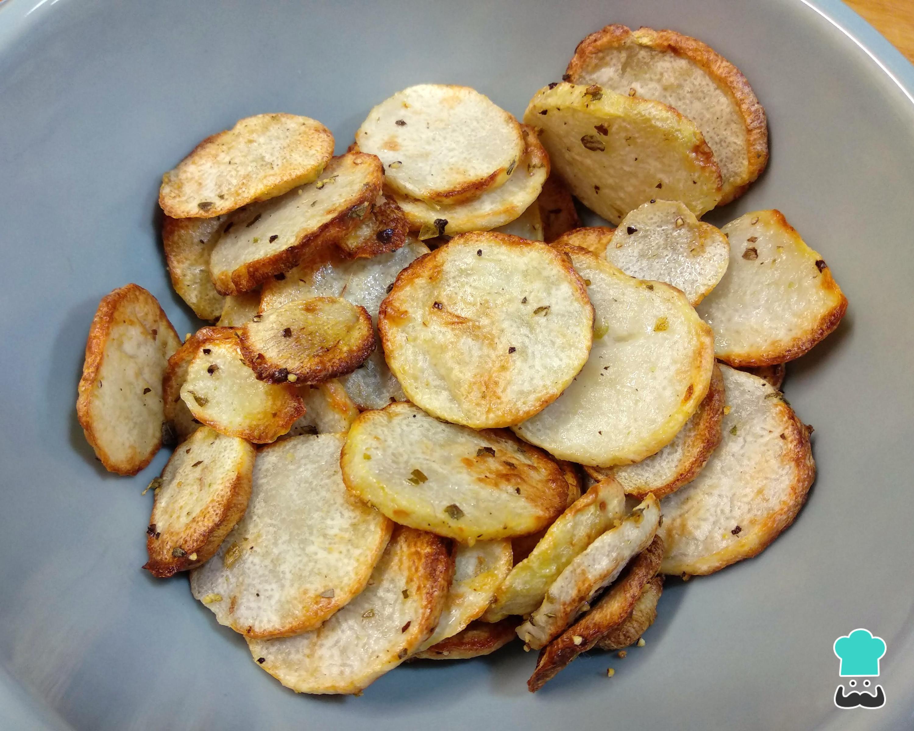 - DICA 2: Corte os inhames em rodelas bem fininhas (1-2 mm) para conseguir chips crocantes, ou em rodelas um pouco mais grossas para chips macios.