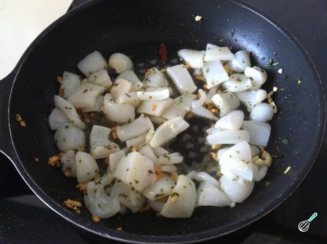 Junte os chocos e tempere. Cozinhe alguns minutos em fogo médio.