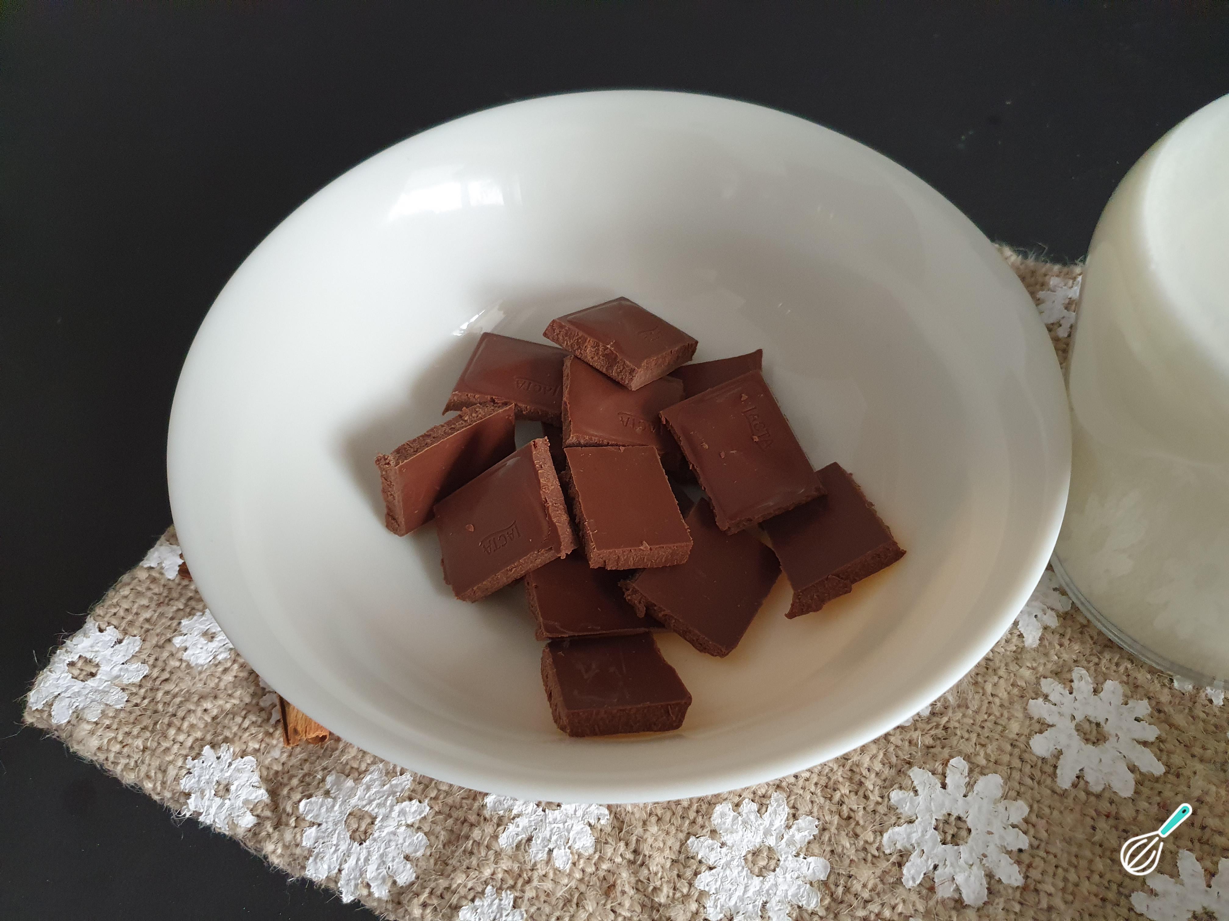 Chocolate quente com chocolate em barra e creme de leite
