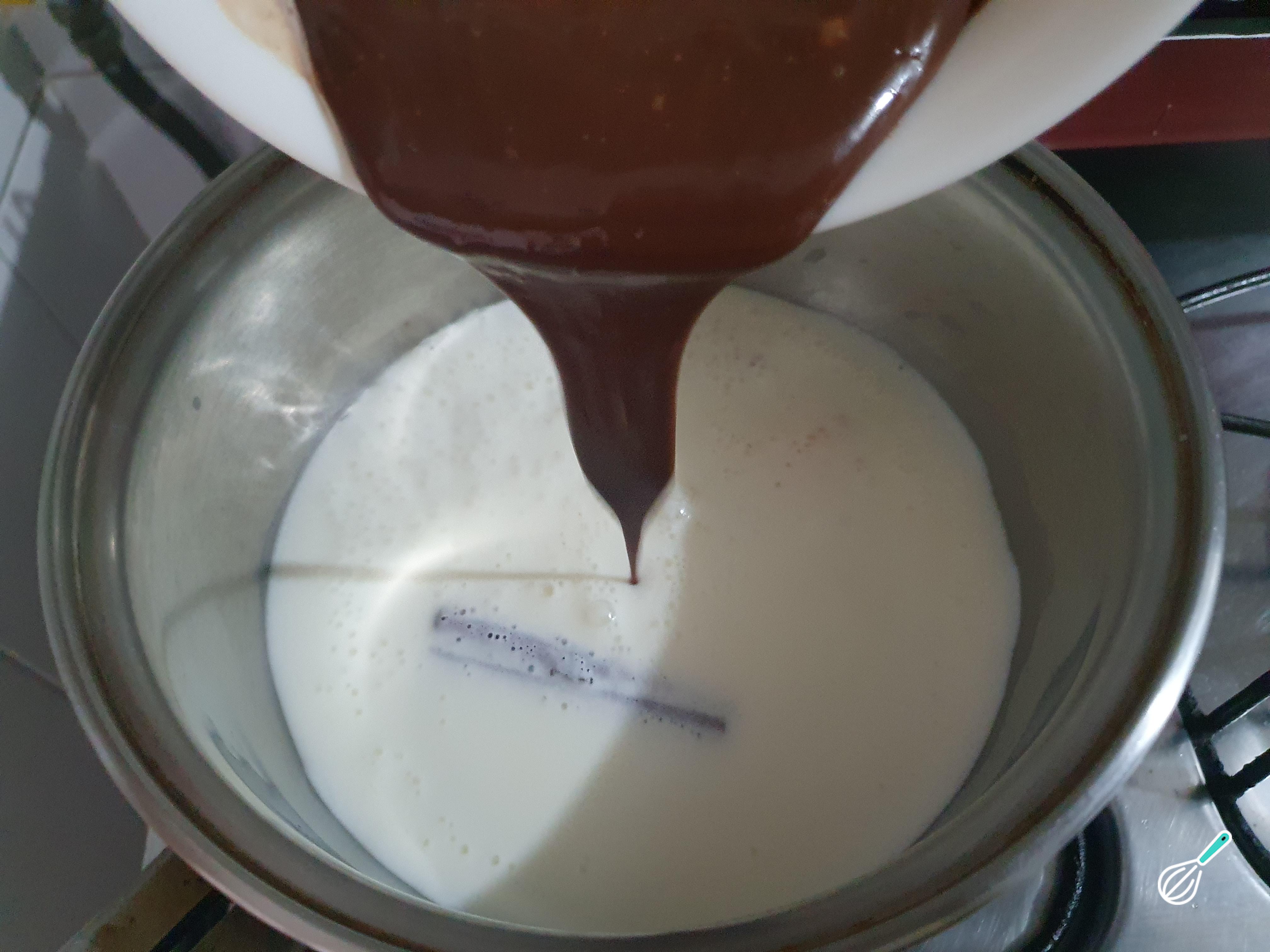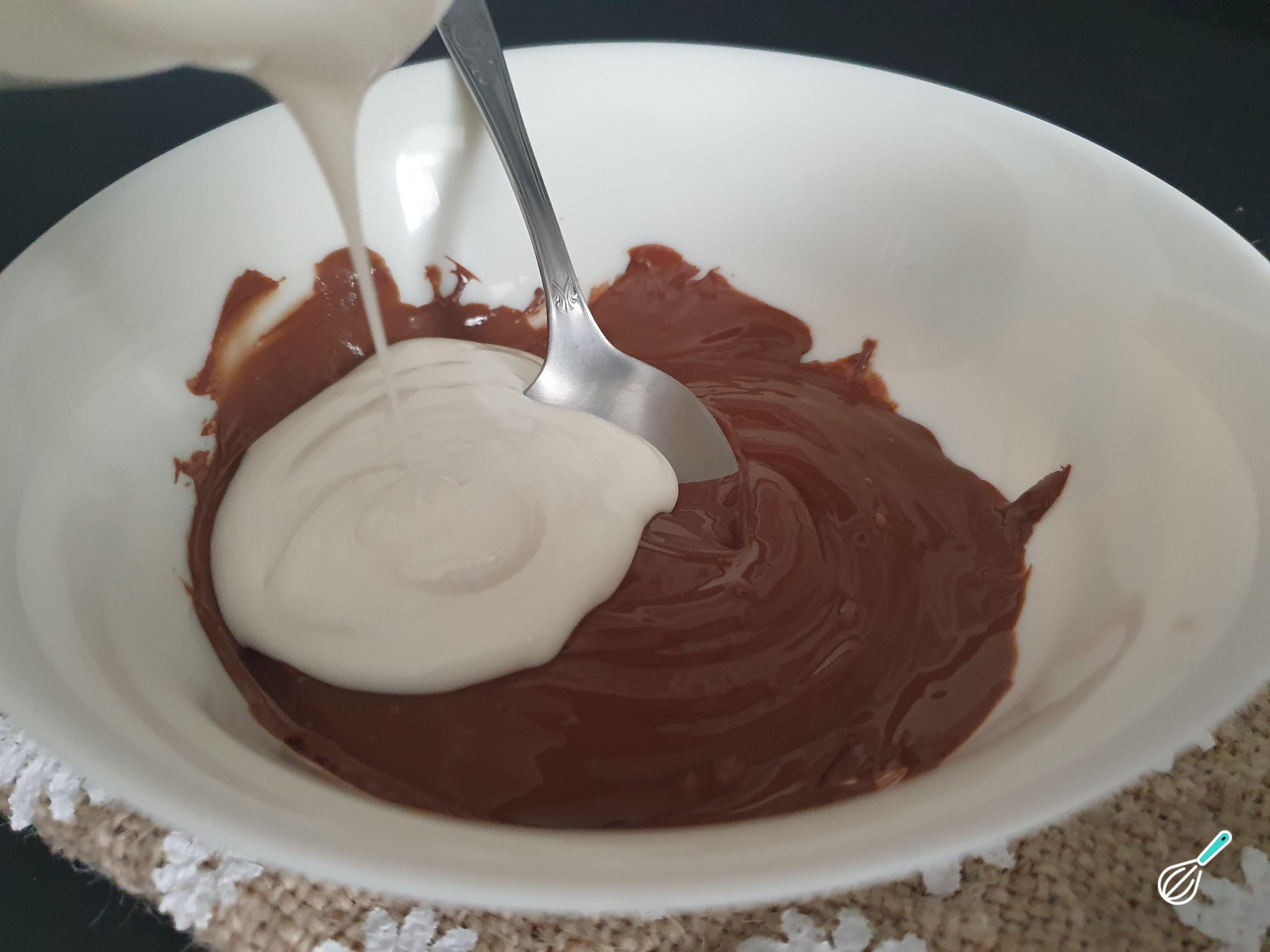 Depois que o chocolate estiver completamente derretido adicione o creme de leite e misture bem.