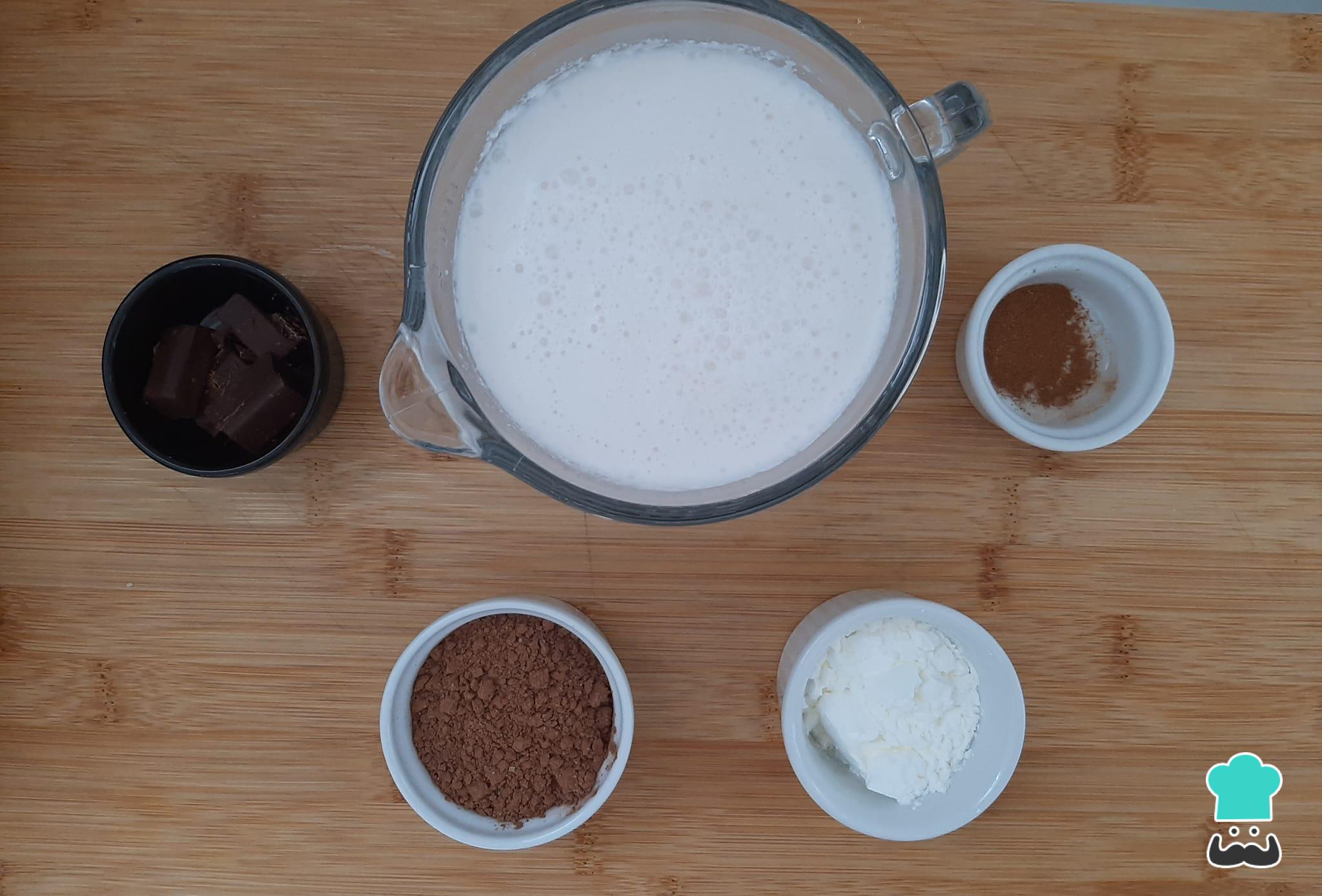 Separe os ingredientes necessários para preparar o chocolate quente vegano.