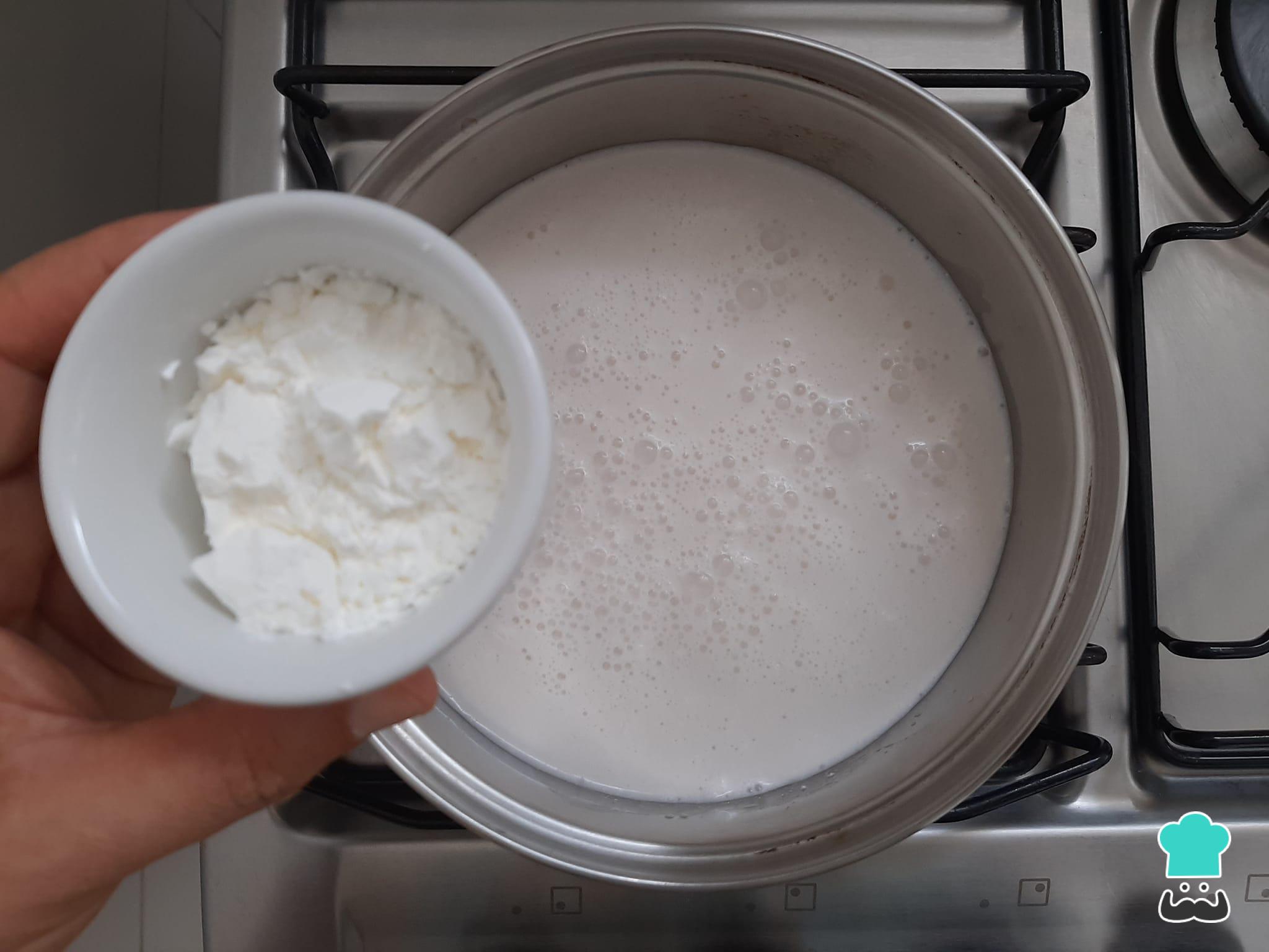 Dilua o amido de milho no leite de coco dentro de uma panela média, com o fogo ainda desligado, misturando bem até ficar homogêneo.