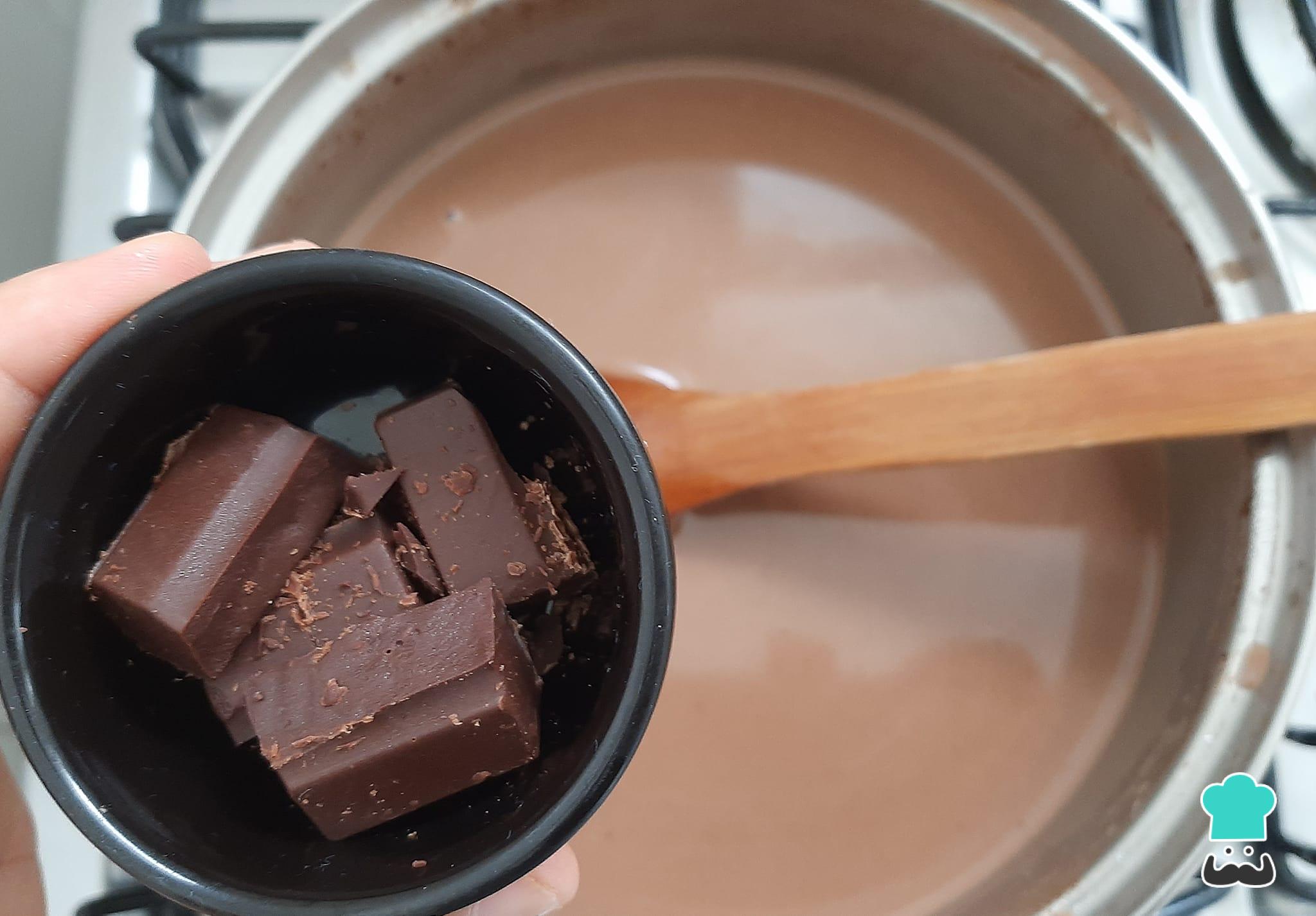 Desligue o fogo e adicione os pedaços de chocolate 50% cacau.