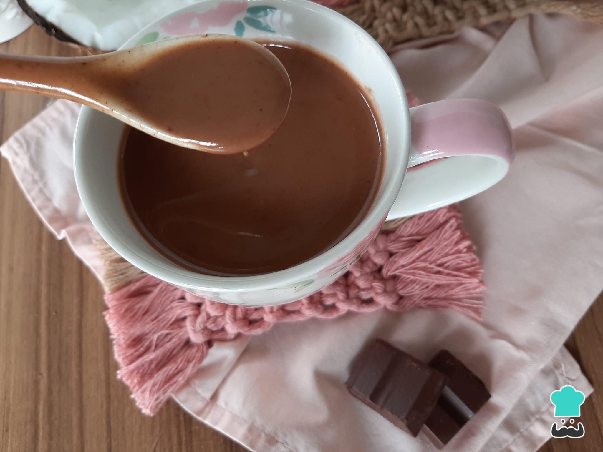 Na versão que iremos apresentar aqui no TudoReceitas, o chocolate quente será preparado com leite de coco caseiro (segundo pesquisas atuais, o leite de coco ajuda a emagrecer por aumentar a saciedade e melhorar o trânsito intestinal), cacau em pó, amido de milho e pedacinhos de chocolate vegano 50% cacau. Além disso, sugerimos que acrescente 1 pitada de canela em pó para deixar o chocolate quente com um sabor ainda mais especial!