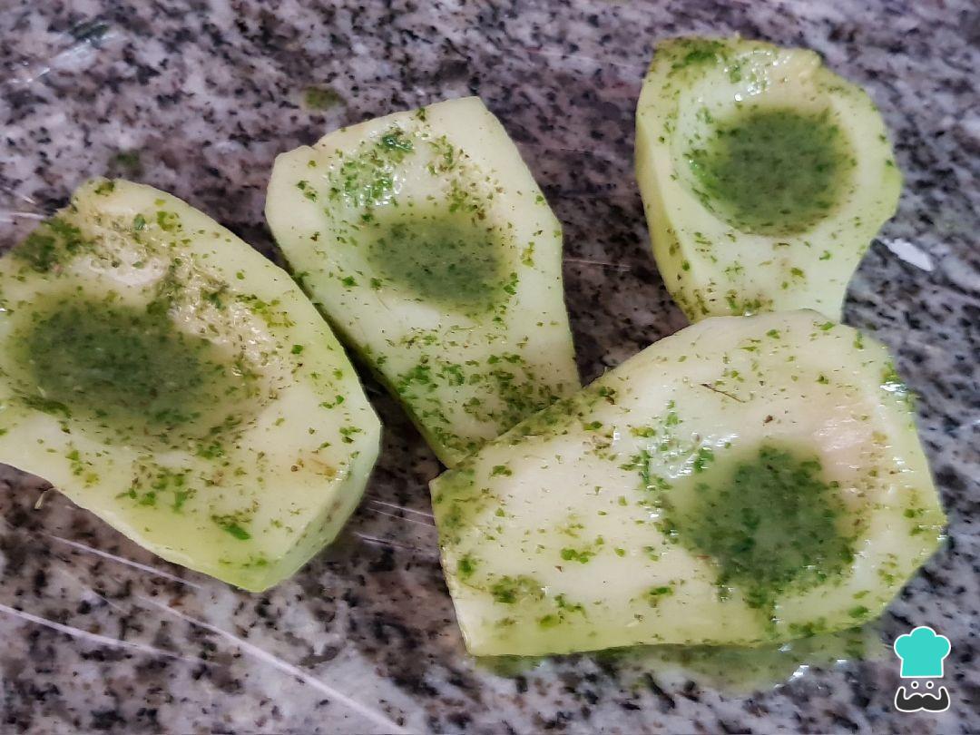 Dica: Se for necessário, segure as duas metades de chuchu com palitos de dente.