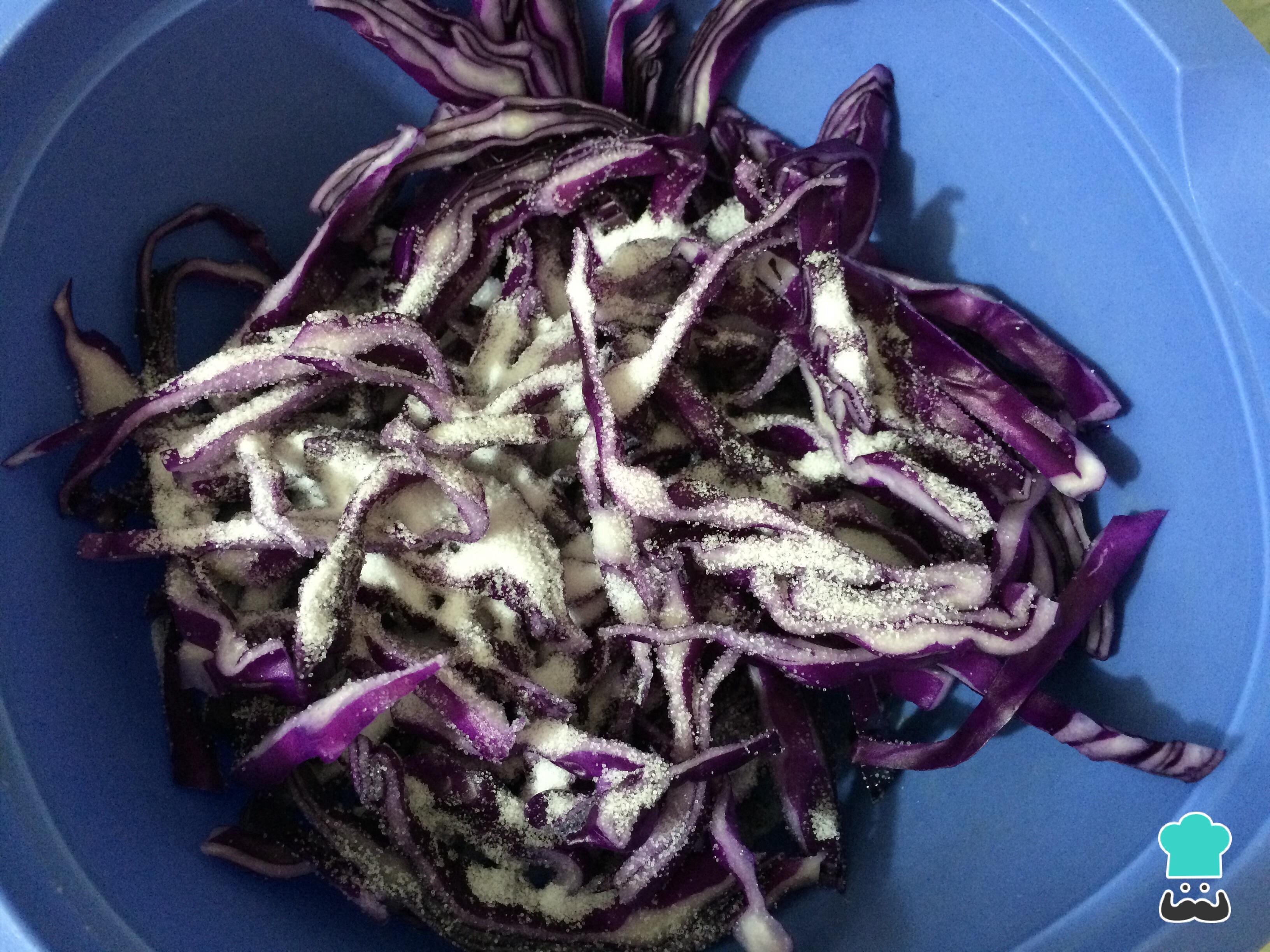 Dica: O sal vai ajudar a eliminar o excesso de água do repolho.