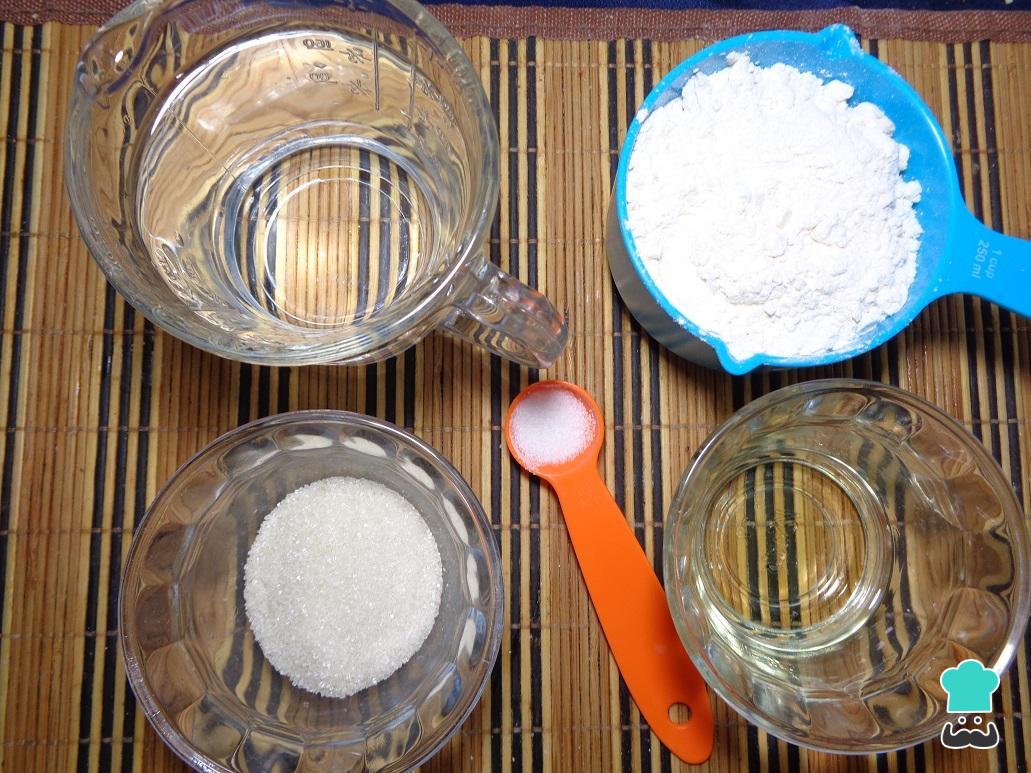 Para fazer essa receita de churros comece por reunir os ingredientes necessários.