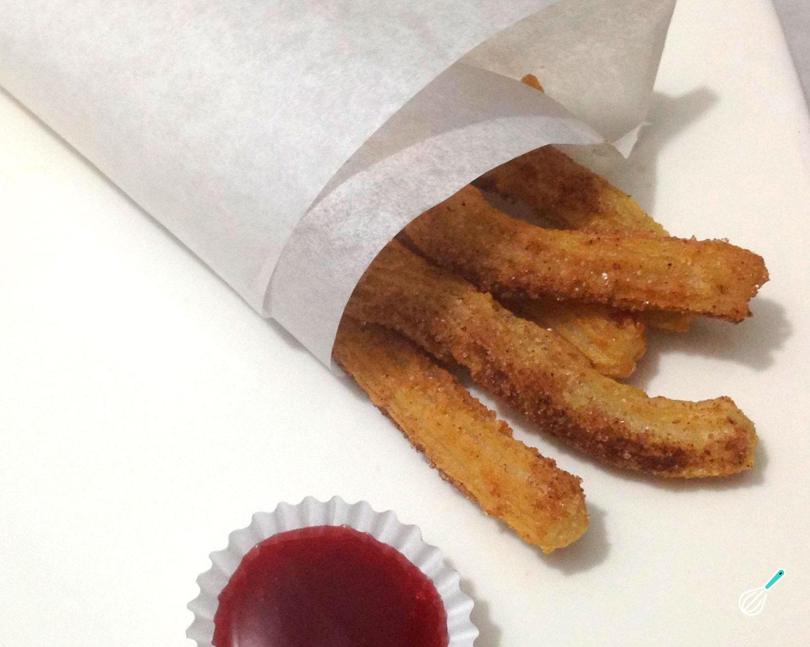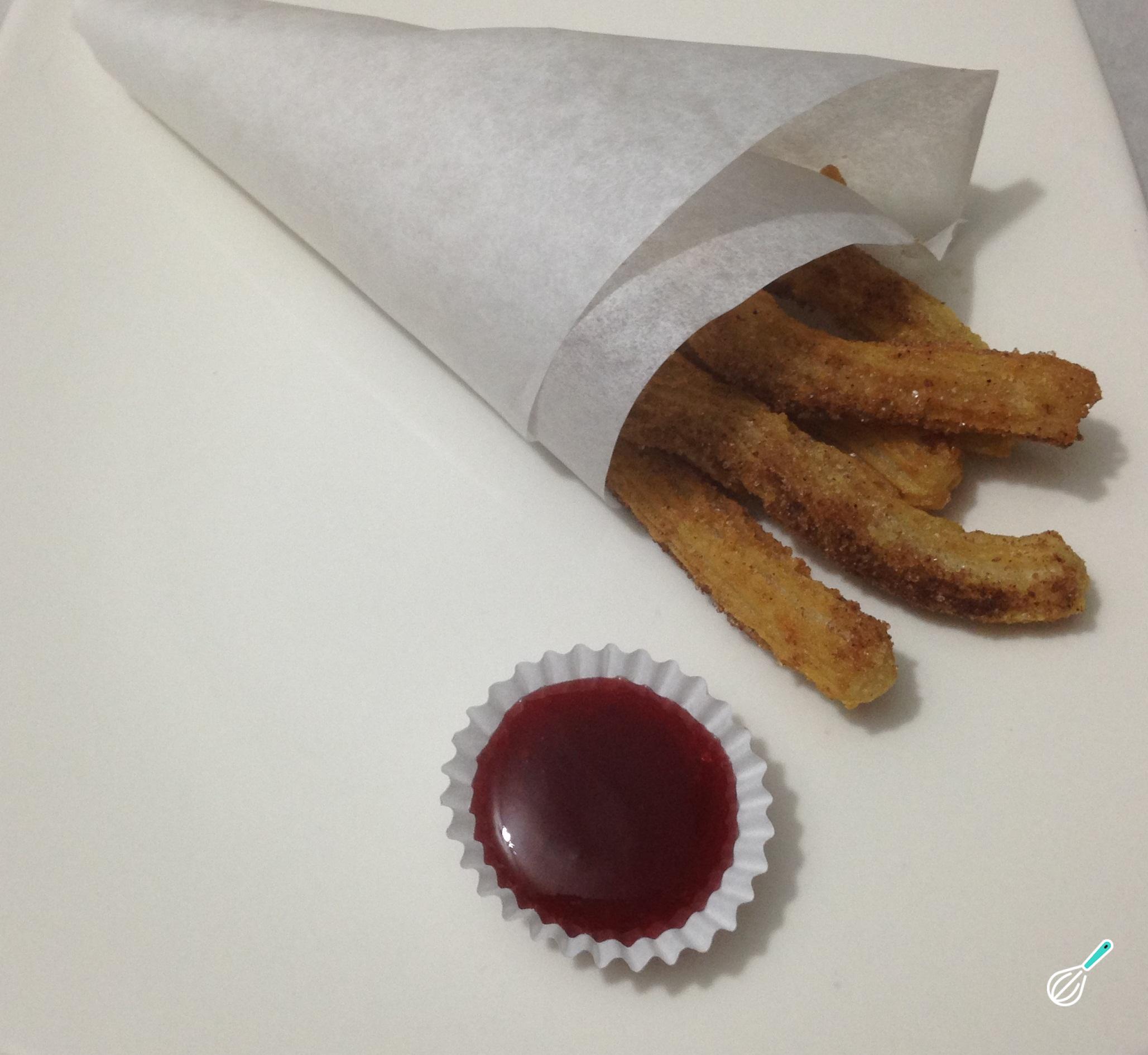 Sirva seus churros caseiros acompanhados com molho de frutas vermelhas, geleia de morango ou calda de chocolate.