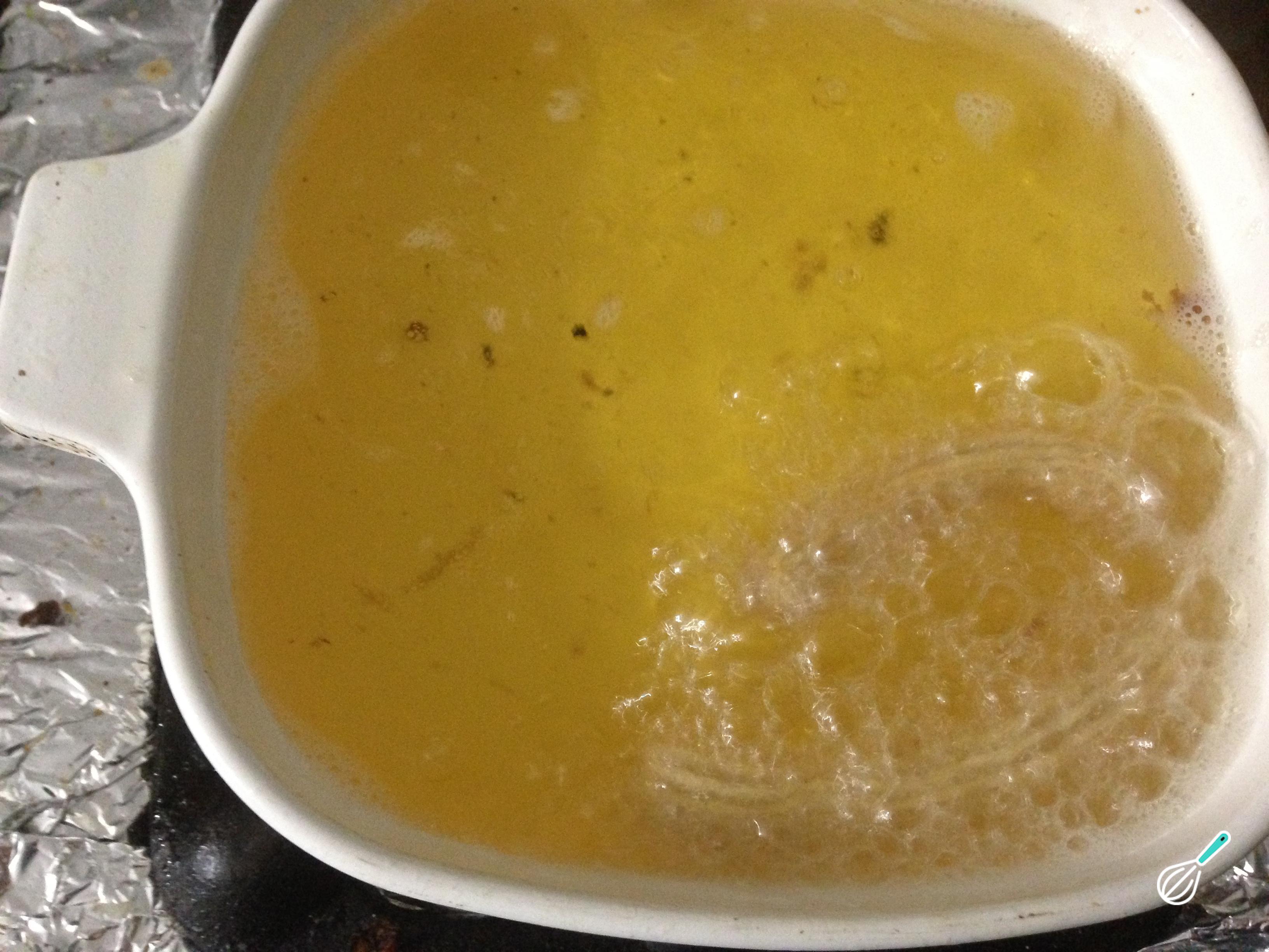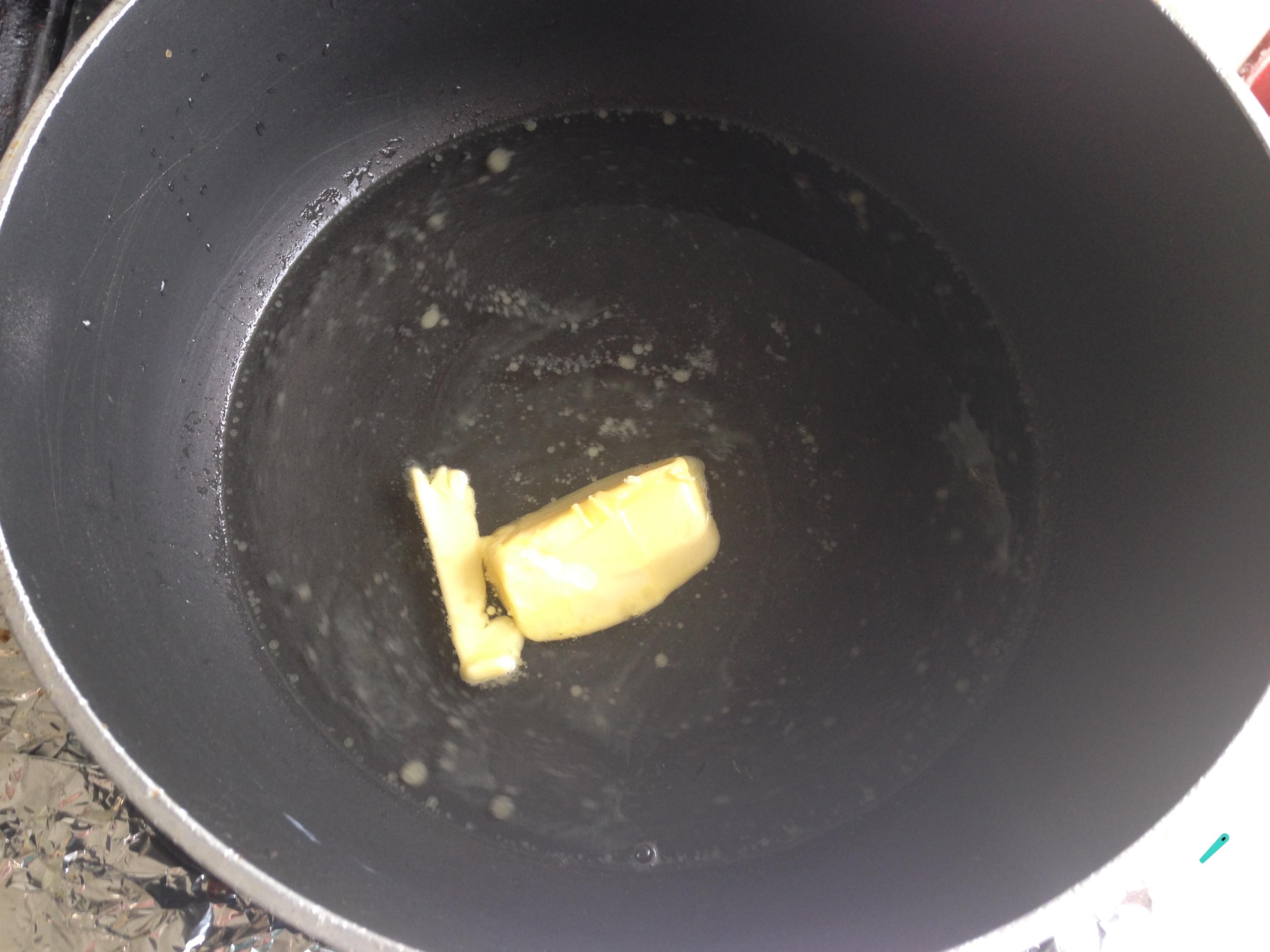 Em uma panela ou frigideira coloque a água, a manteiga e uma pitada de sal. Deixe ferver.