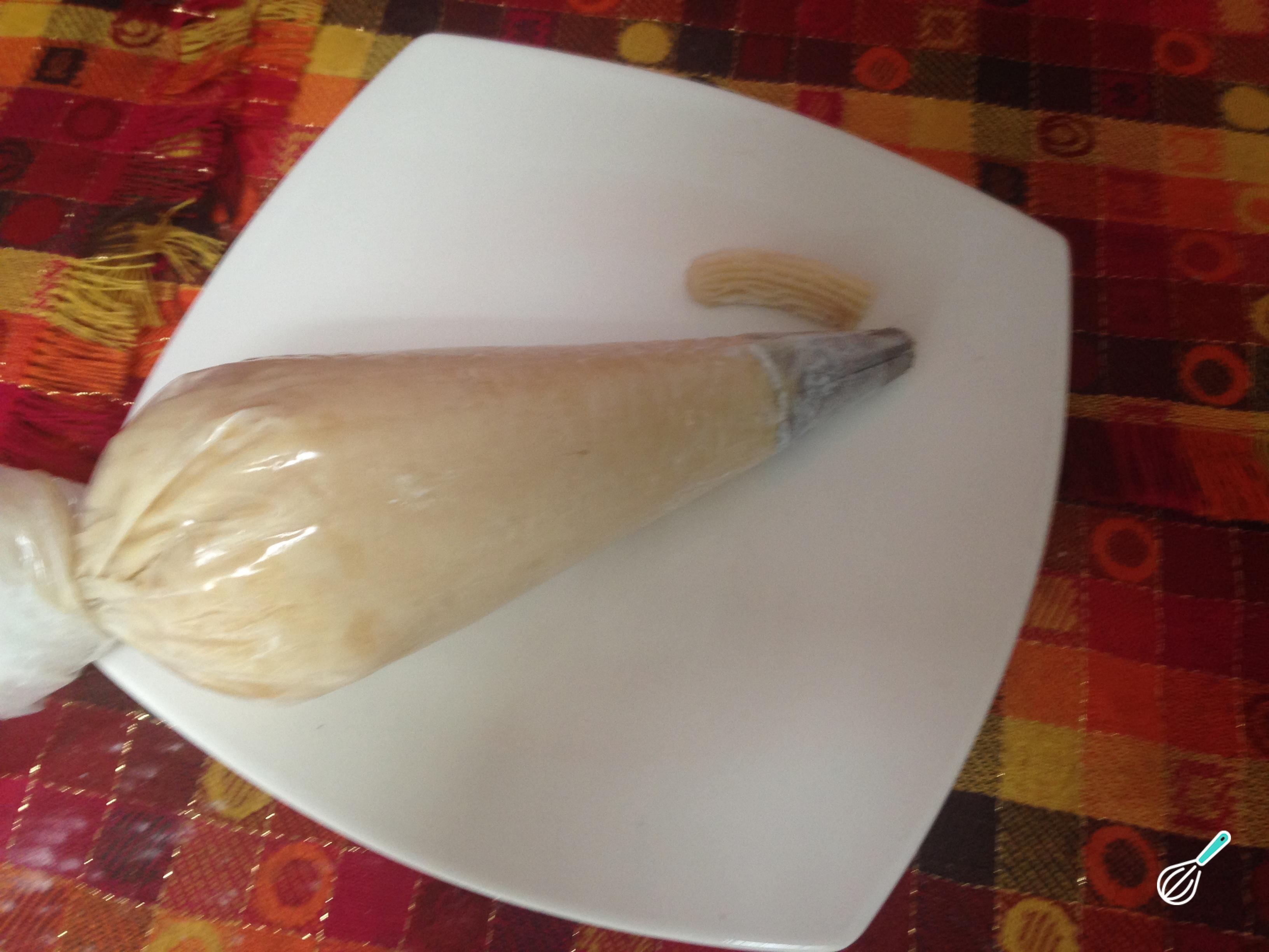 Deixe a massa esfriar e depois insira-a em uma manga de confeiteiro com bico estrelado, para conferir aos churros seu formato caraterístico.