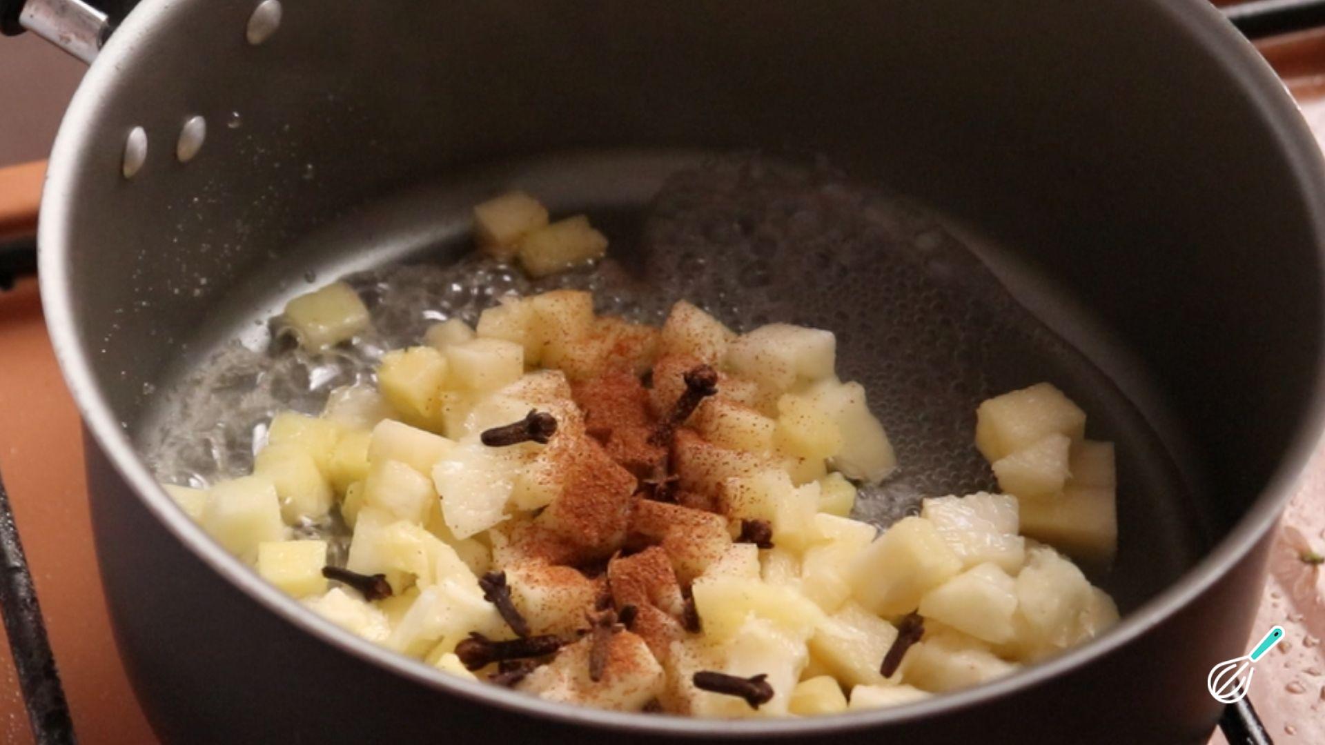Para começar a fazer o seu Chutney de abacaxi coloque em uma panela coloque o açúcar e o vinagre de maçã e leve ao fogo baixo até dissolver o açúcar. Mexa sempre.