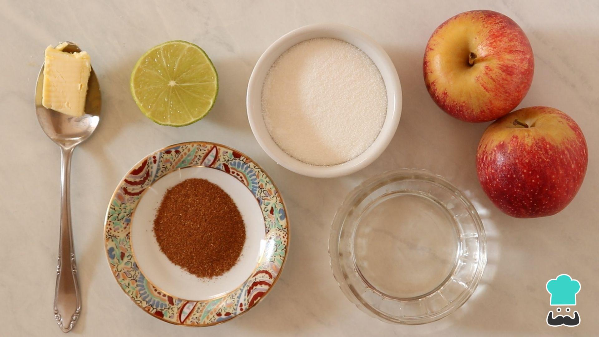 Comece separando os ingredientes da receita de cinnamon apple do Outback - a manteiga é opcional, mas ela dá um brilho e um sabor a mais para a calda!