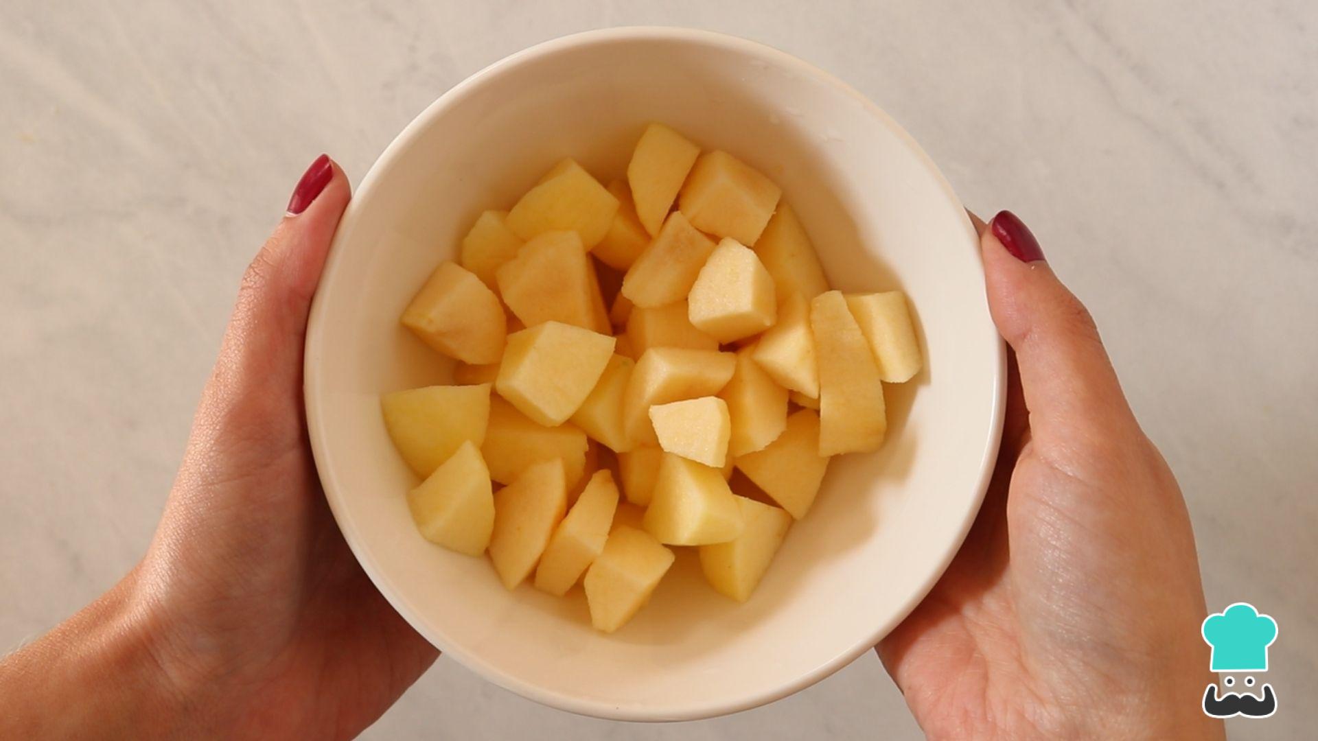 Descasque as maçãs e corte em cubos.