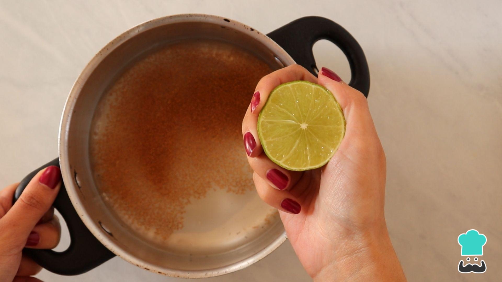 Em uma panela coloque a água, o açúcar, a canela, esprema o limão e misture bem.