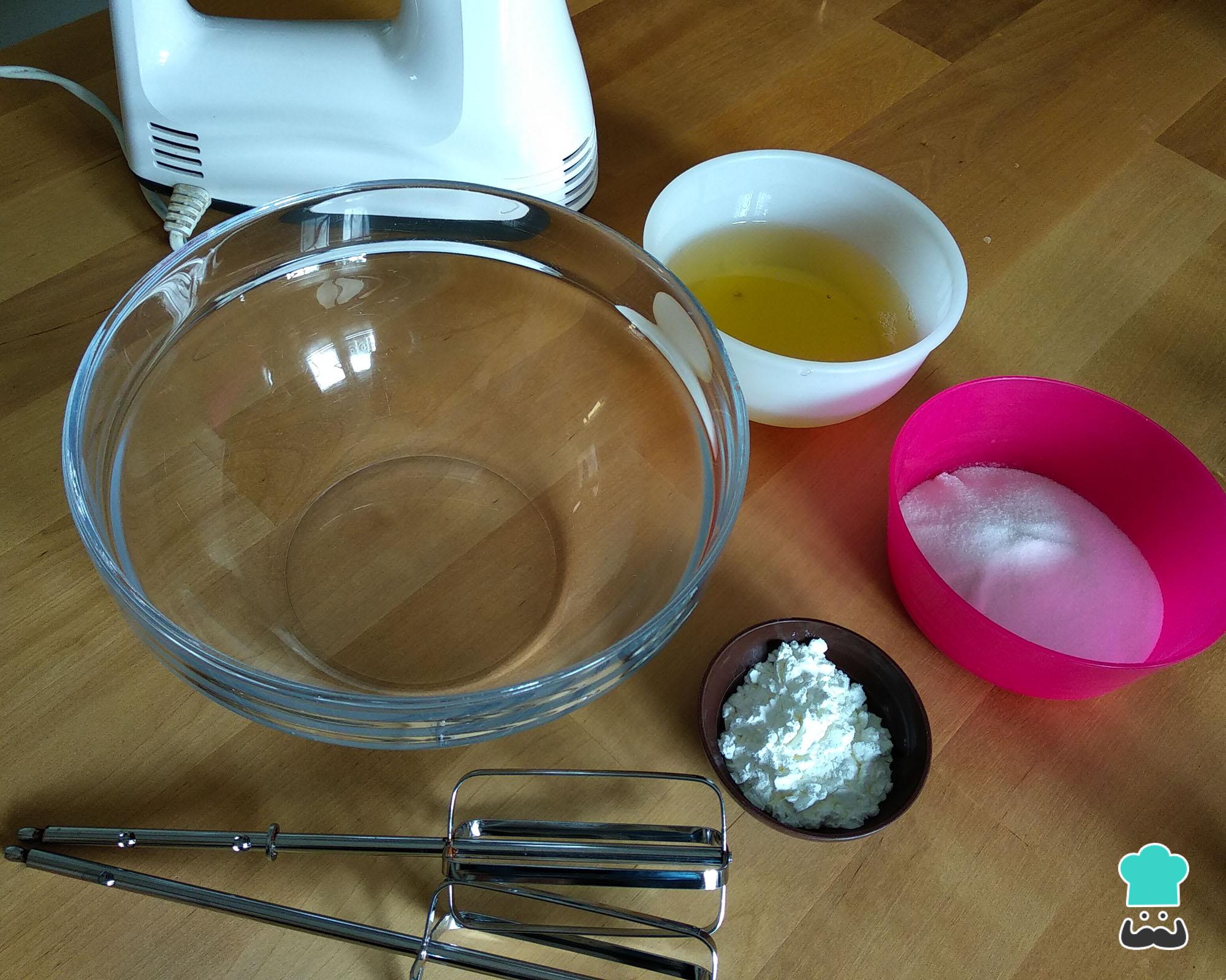 Comece por reunir os ingredientes necessários: as claras de ovo, o açúcar e o amido de milho. Lembramos que todos os utensílios a usar deverão estar devidamente limpos e secos, só assim conseguirá bater bem as claras.
