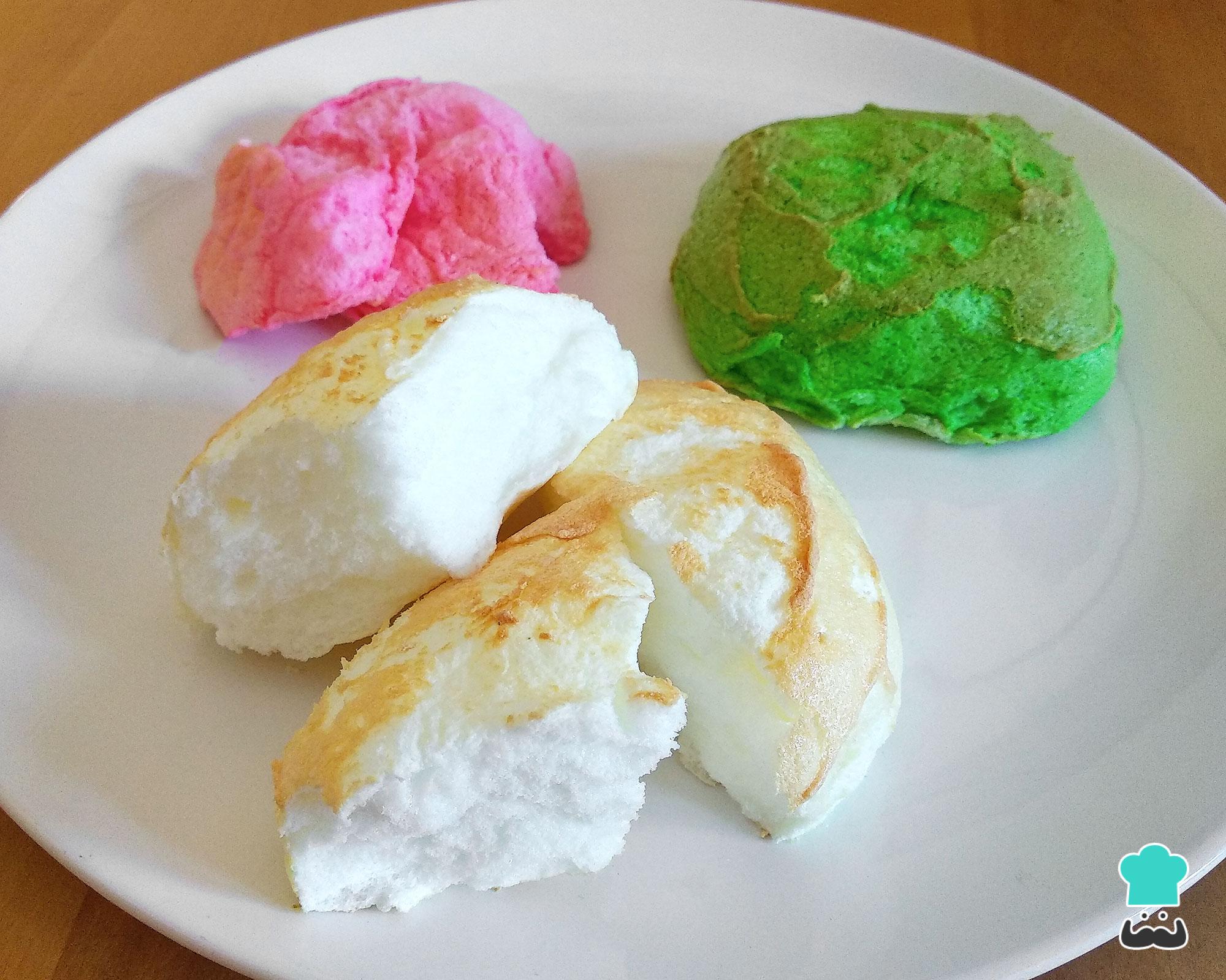Na verdade esta receita de cloud bread não é bem um pão porque ela é preparada com 3 ingredientes que não fazem parte das receitas tradicionais de pão: clara de ovo, açúcar e amido de milho (maisena) - opcionalmente você poderá usar também corante alimentício. O resultado é semelhante a um merengue assado muito fofinho que lembra um pão de leite.