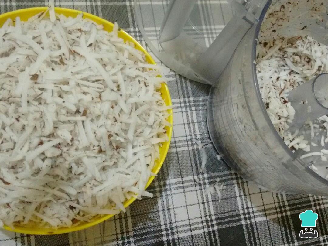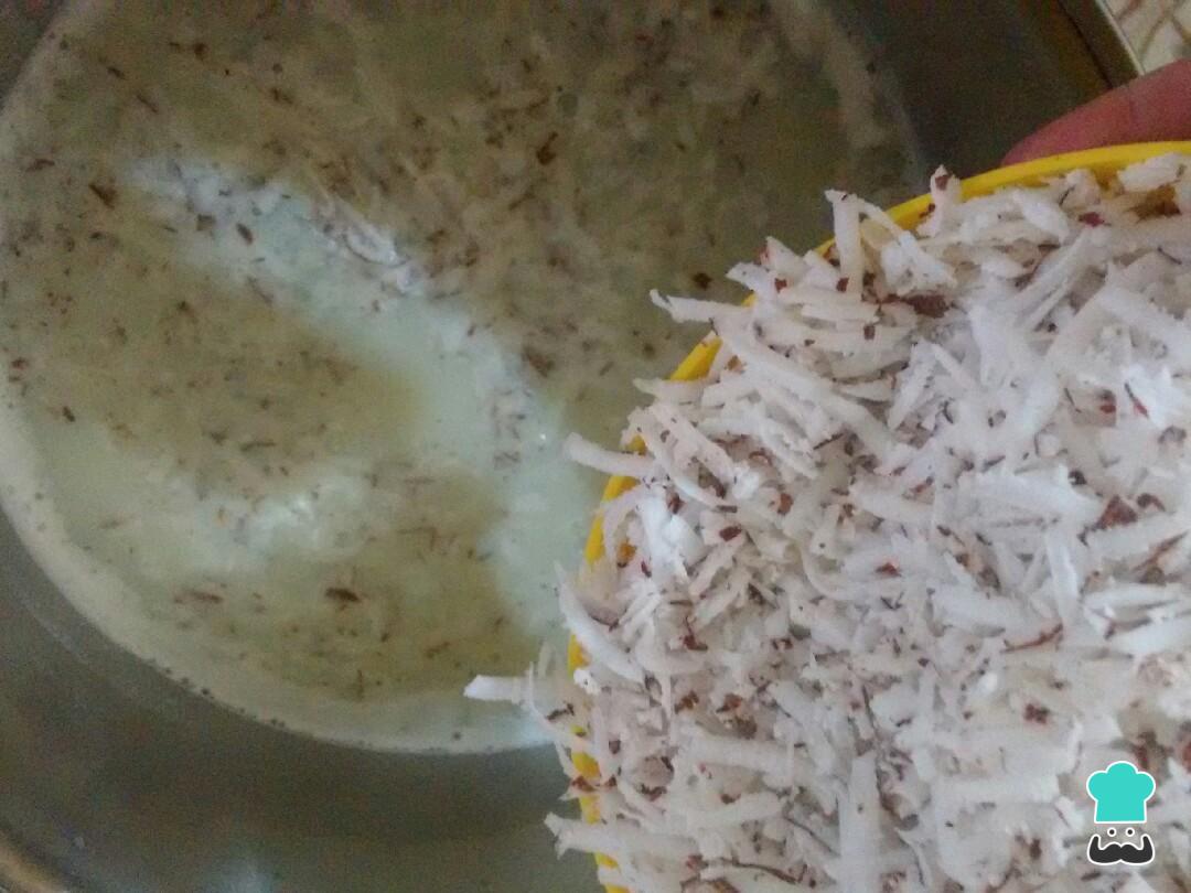 Acabei de fazer e a aparência está surreal! Eu errei e acrescentei o leite condensado junto com coco de uma vez, deu certo TB.