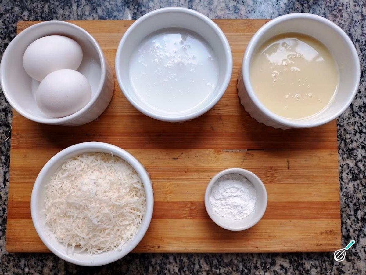 O processo de preparo começa com a reunião dos ingredientes básicos: coco ralado, leite condensado, leite de coco e ovos. Esses ingredientes comuns, podem ser encontrados facilmente na despensa.