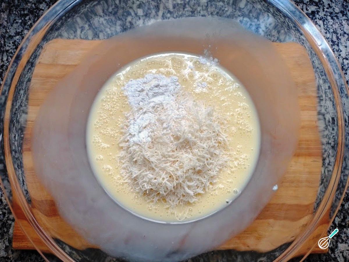 O último passo do preparo é colocar o coco ralado e fermento químico. Misture novamente.